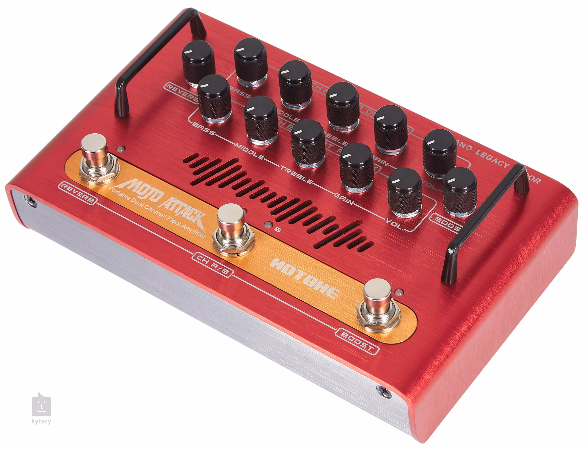 Mojo Attack je 75W tranzistorový gitarový zosilňovač v podobe pedálového efektu, ktorý ponúka praktické riešenie pre hráčov, ktorí sa radi zaobídu bez potreby nosiť so sebou tradičné objemné a ťažké gitarové zosilňovače. Ide o dvojkanálovú jednotku založenú na zvukoch dvoch mikro zosilňovačov Hotone z radu Nano Legacy - Mojo Diamond inšpirovaného tvídom Fender a Mojo Heart Attack inšpirovaného hi-gain tlakom Mesa Boogie Rectifier. Mojo Attack tak rešpektuje klasické rozdelenie kanálov clean/crunch a distortion.
