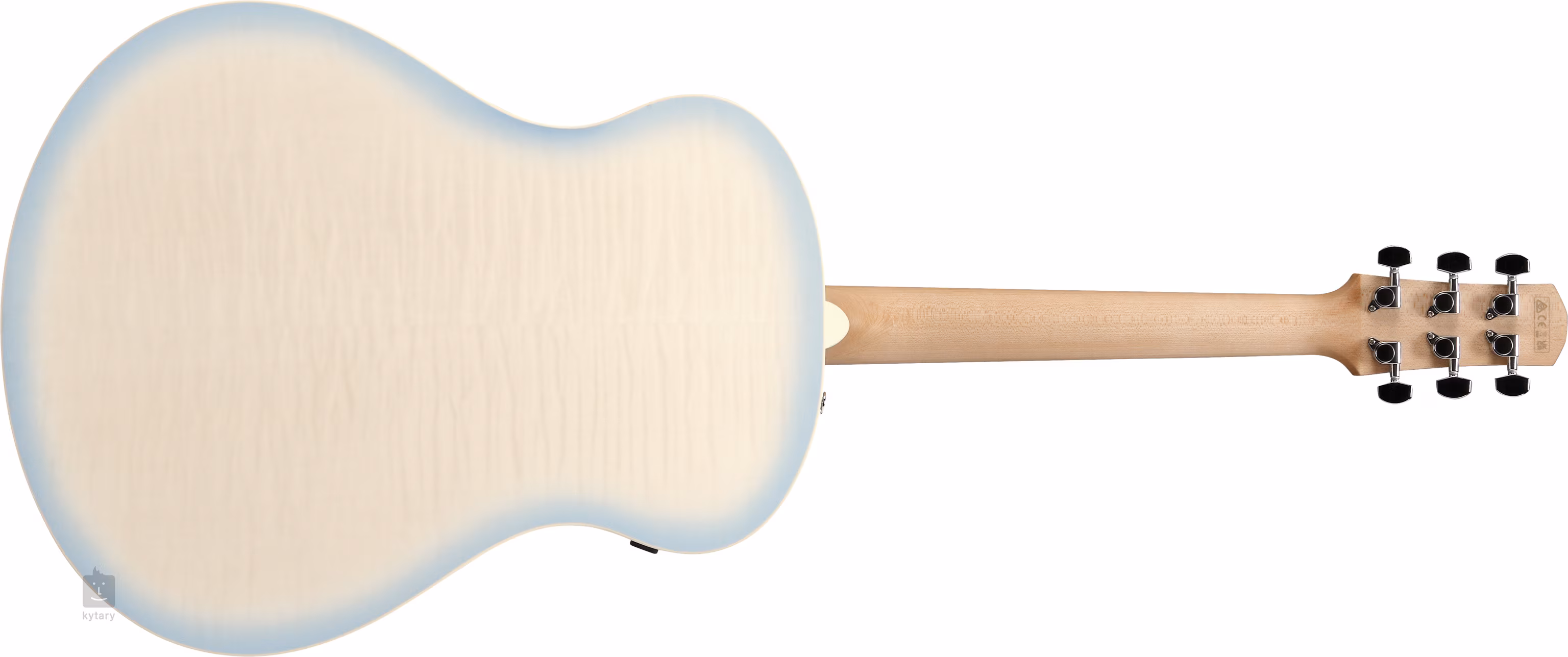 Predná doska modelu AAM370M2E Transparent Antique White Ice Blue je vyrobená z masívneho smreka Sitka, zatiaľ čo zadná doska je z laminovaného javora.