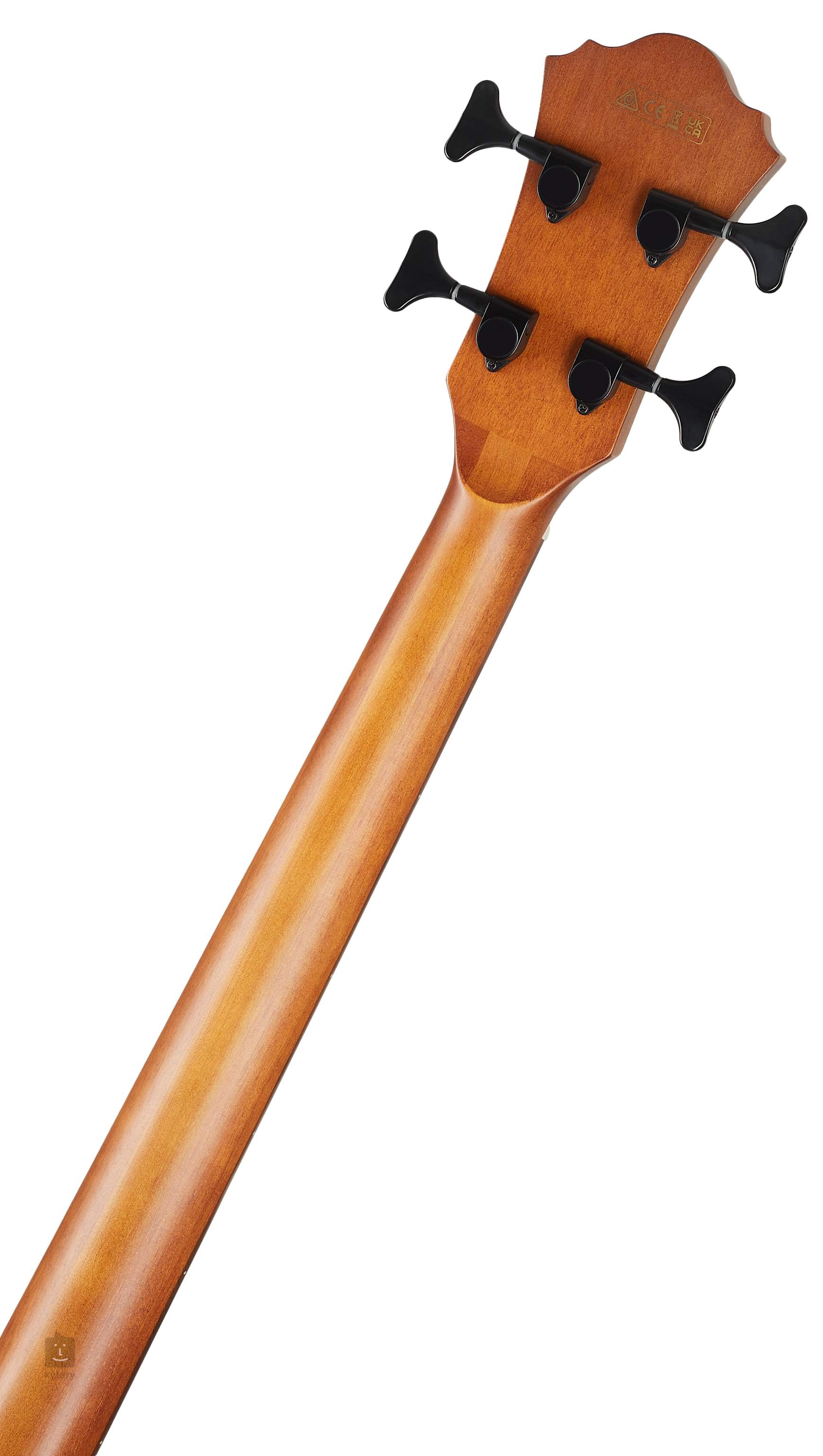 Ibanez AEGB24E Black je elektroakustická basgitara s užším telom s hĺbkou 95 mm v modernom single-cut dizajne, ktorý priamo nabáda k živému hraniu - akusticky aj po zapojení do aparatúry. Samotné telo je vyrobené z laminovaného dreva sapele, ktoré je vzhľadom a vlastnosťami podobné mahagónu. Palisandrový hmatník s dvadsaťjeden pražcami je prilepený ku krku z troch kusov javora a dreva nyatoh.