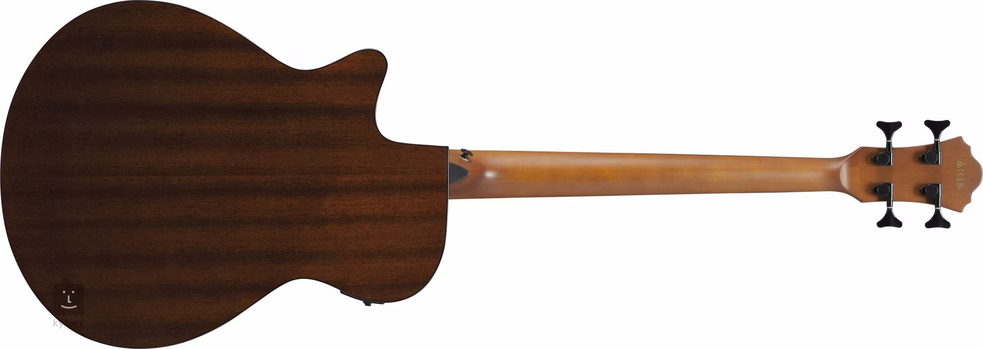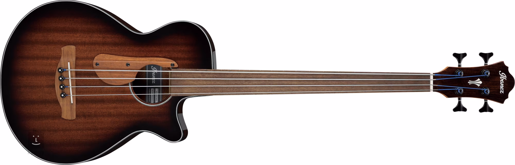 Ibanez AEGB24FE Mahogany Sunburst je bezpražcová elektroakustická basgitara s užším telom s hĺbkou 95 mm v modernom single-cut dizajne, ktorá priamo vyzýva k živému hraniu - akusticky aj po zapojení do aparatúry. Samotné telo je vyrobené z laminovaného sapele, dreva, ktoré je vzhľadom a vlastnosťami podobné mahagónu. Palisandrový hmatník s dvadsaťjeden pražcami je prilepený ku krku z troch kusov javora a dreva nyatoh.
