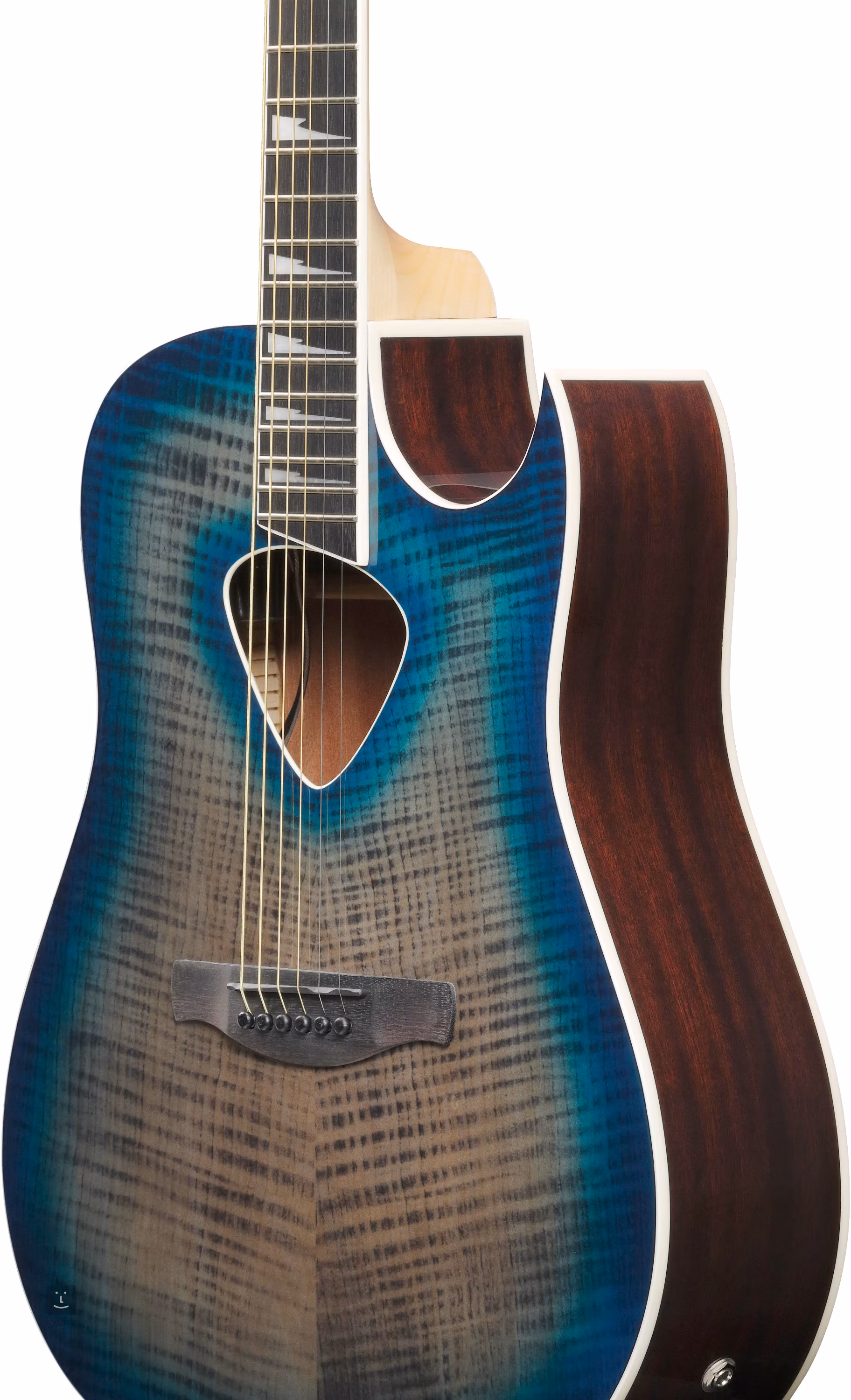Elektroakustická gitara ALT50FA-BDB okamžite upúta pozornosť kombináciou vrchného dielu z plamenného javora, lesklého povrchu Blue Doom Burst a prírodného vrstveného sapele na zadnej strane a bokoch. Javorový krk s pohodlným profilom Comfort Grip je vybavený hmatníkom z purpleheartu s dvadsiatimi dvoma pražcami. Pozícia značiek Sharktooth uľahčuje orientáciu na hmatníku.