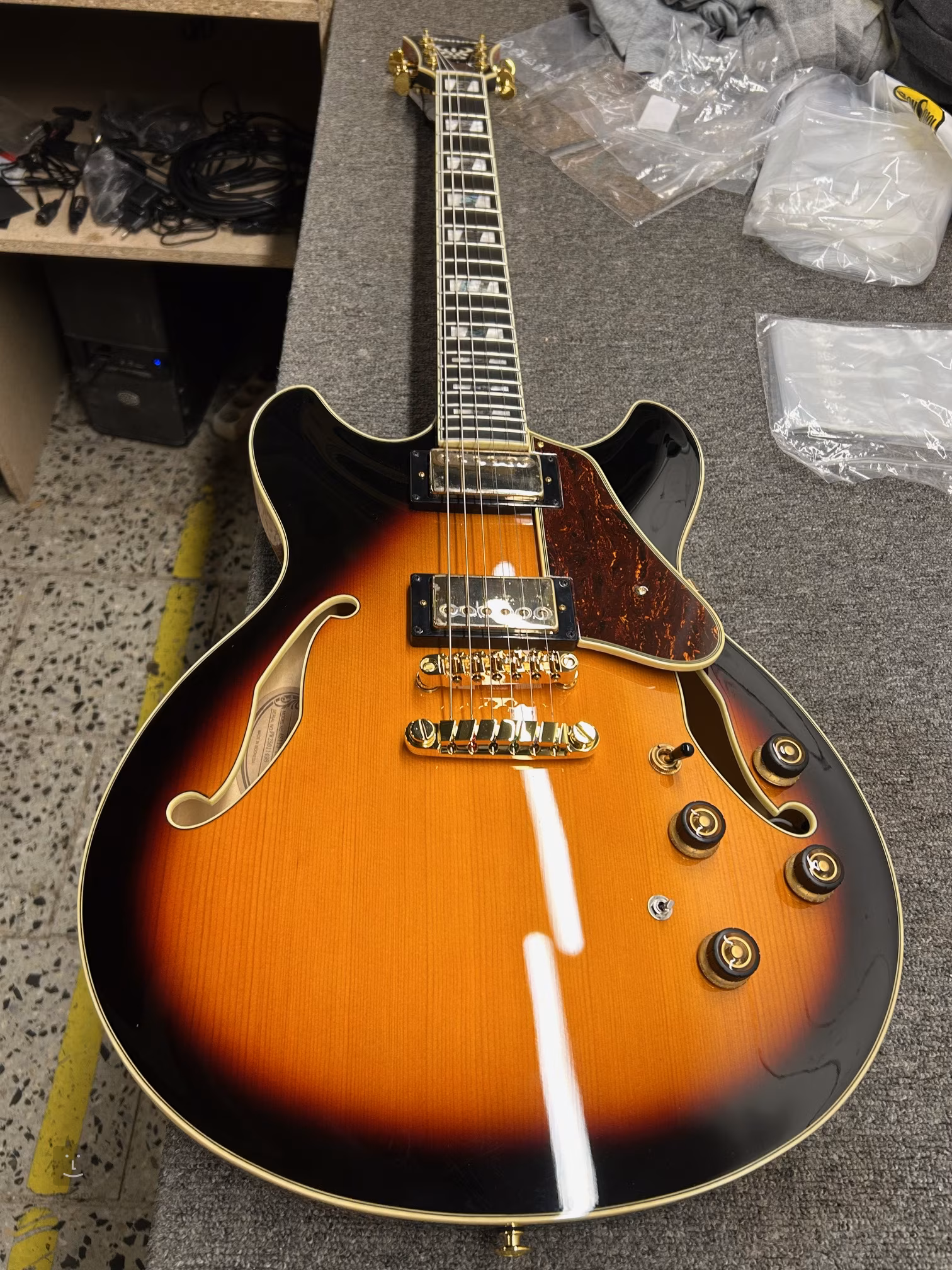Poloduté telo gitary je vyrobené z laminovanej smrekovej prednej dosky, laminovanej javorovej zadnej dosky a lubov a stredového bloku. Trojdielny krk z nite a javora je prilepený k hmatníku z ebenového dreva Makassar osadenému dvadsiatimi dvoma pražcami veľkosti Medium s úpravou hrán Artstar. Orientáciu na povrchu hmatníka uľahčujú polohové bloky zložené z imitácie perlete a pravej perlete (abalone).