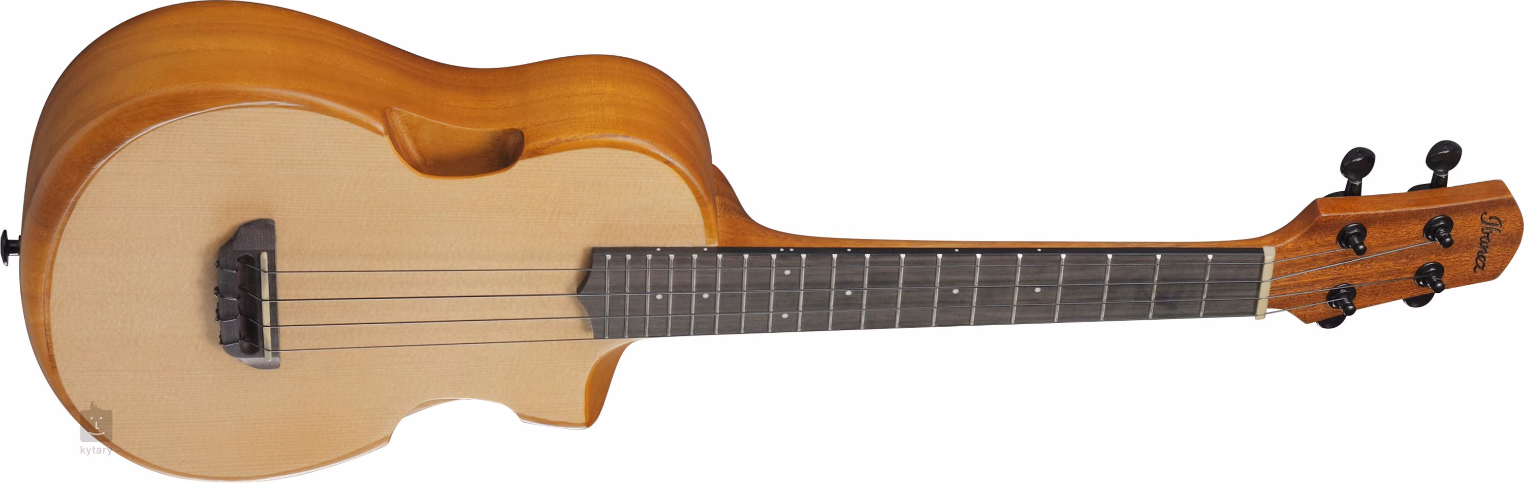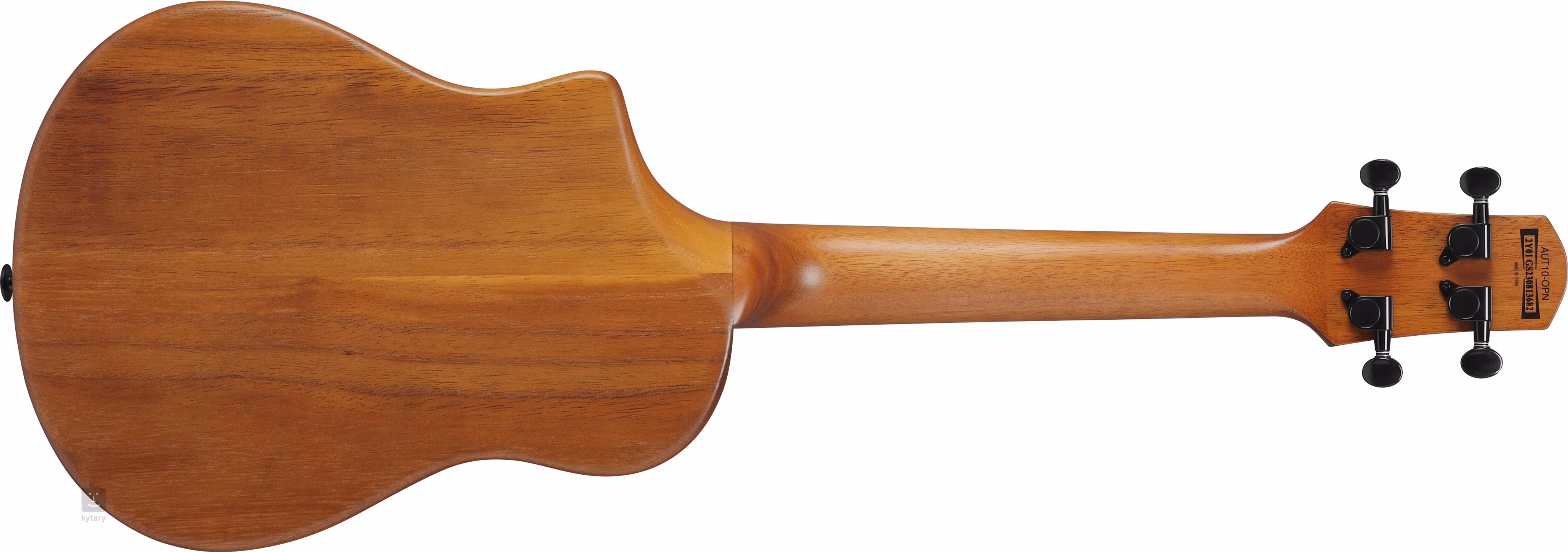 Akustické ukulele Ibanez AUT10-OPN zo série AU má zaujímavú konštrukciu s masívnym blokom dreva pavlovnia na zadnej strane a luboch, ku ktorému je pripevnená laminovaná smreková vrchná doska. Tento spôsob konštrukcie a špeciálne prvky v podobe dvojitých zvukových otvorov na bočných stranách (Stereo Sound Port System), vyvýšenej opierky a skoseného výrezu spodnej časti tela dodávajú nástroju špecifický zvuk a skvelú hrateľnosť.