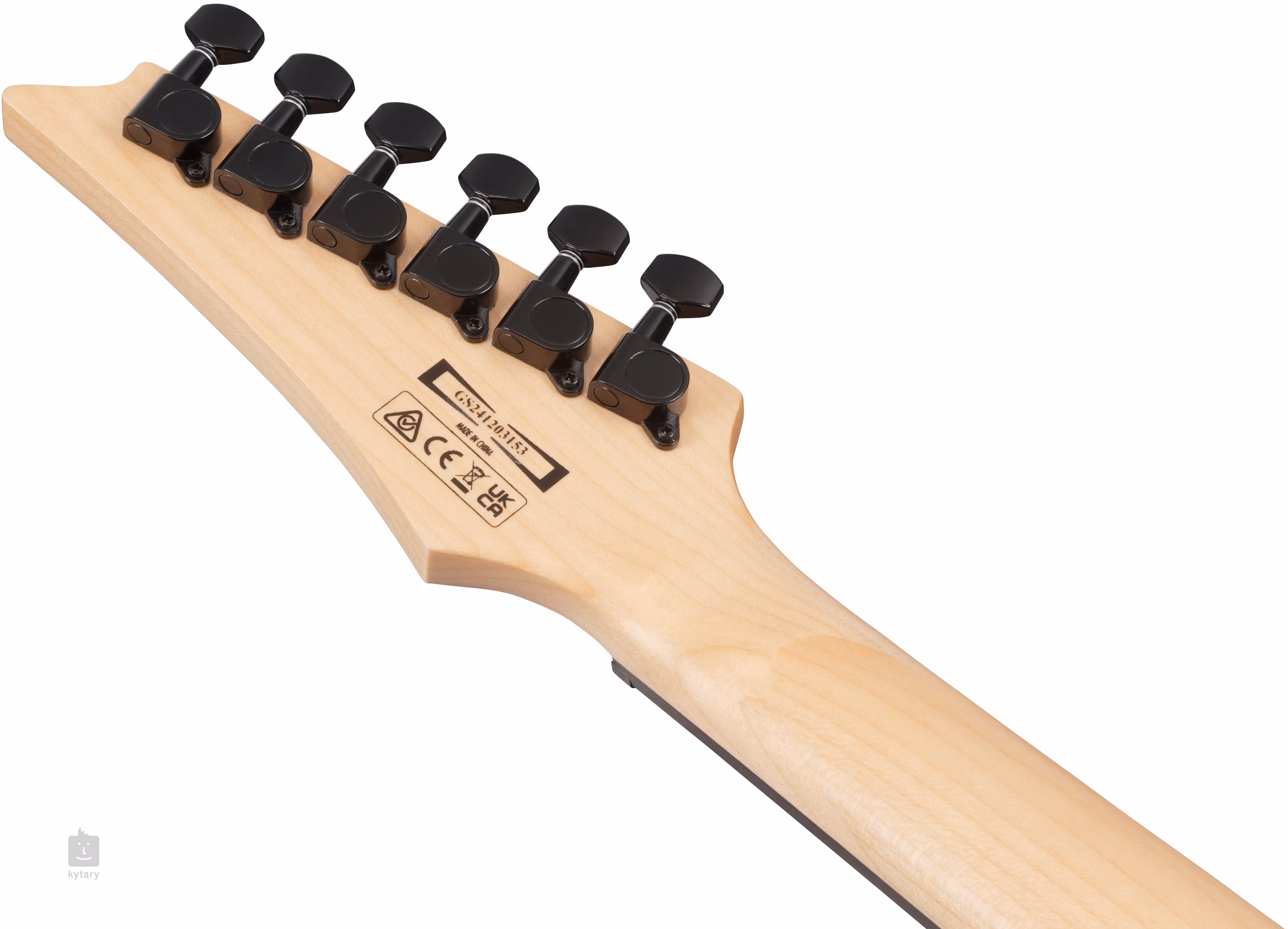Séria GIO od japonskej značky Ibanez ponúka cenovo dostupné nástroje vhodné pre začínajúcich hráčov. Elektrická gitara GRG120QASPBKG je model Super ST RG s plochejším krkom, nižšou hmotnosťou a charakteristickými výrezmi tela, šitý na mieru pre začínajúcich rockových a metalových gitaristov.