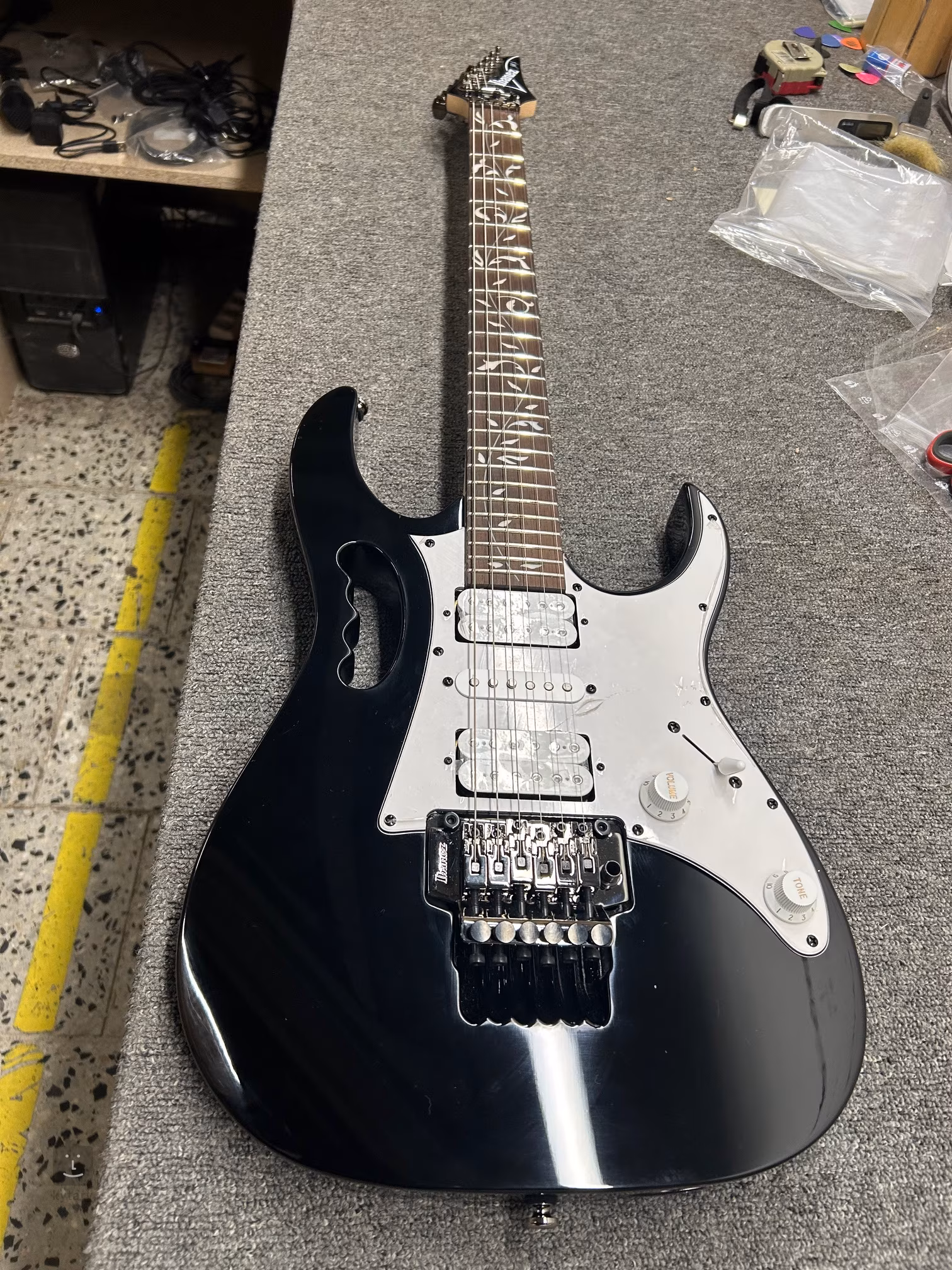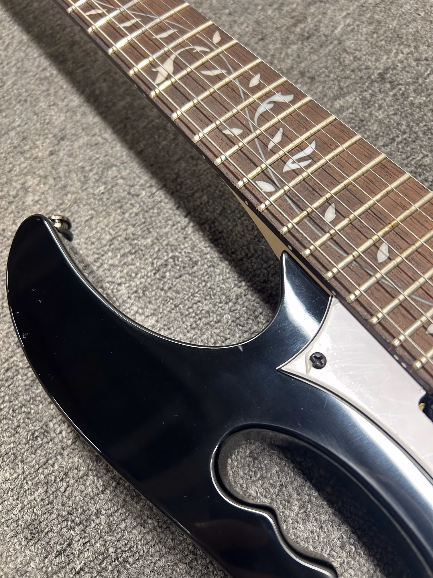 Táto japonská elektrická gitara Ibanez je signature modelom slávneho gitarového mága Steva Vaia. Ide o cenovo dostupnejší model, ktorý má stále jasné znaky SV v podobe výrezu pre opičiu rukoväť v tele a ozdobnej intarzie na hmatníku v tvare stromu života.