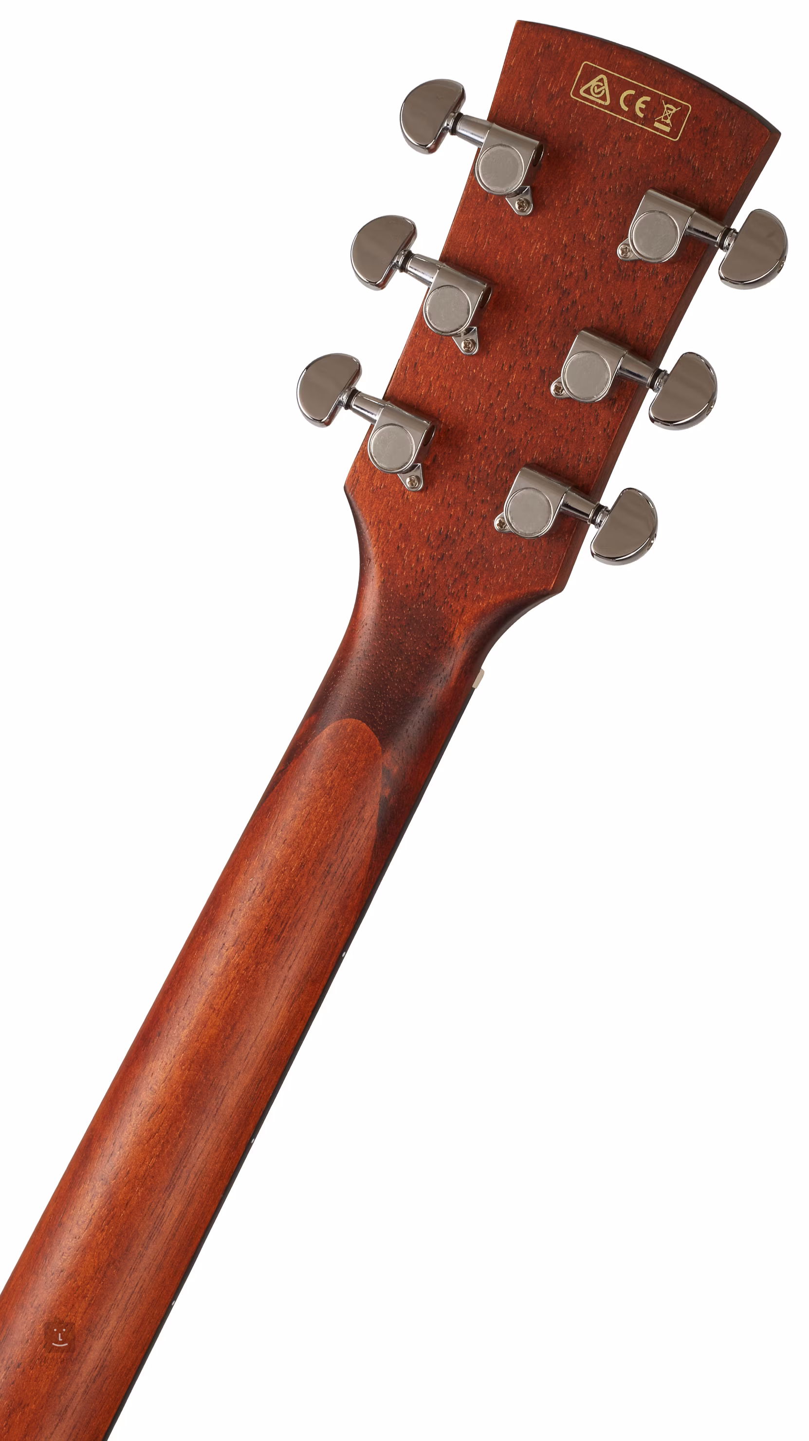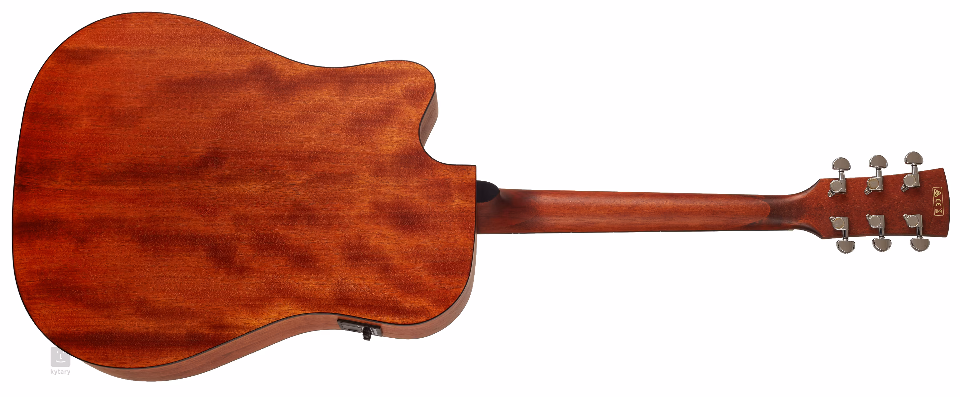 Vrstvené telo Dreadnought PF10CE-OPN je vyrobené zo smrekovej prednej dosky a zadnej dosky a lubov z okoumé. Ku krku z exotického dreva nyatoh je prilepený hmatník merbau s 20 pražcami. Orientáciu po povrchu hmatníka uľahčujú biele polohové bodky.