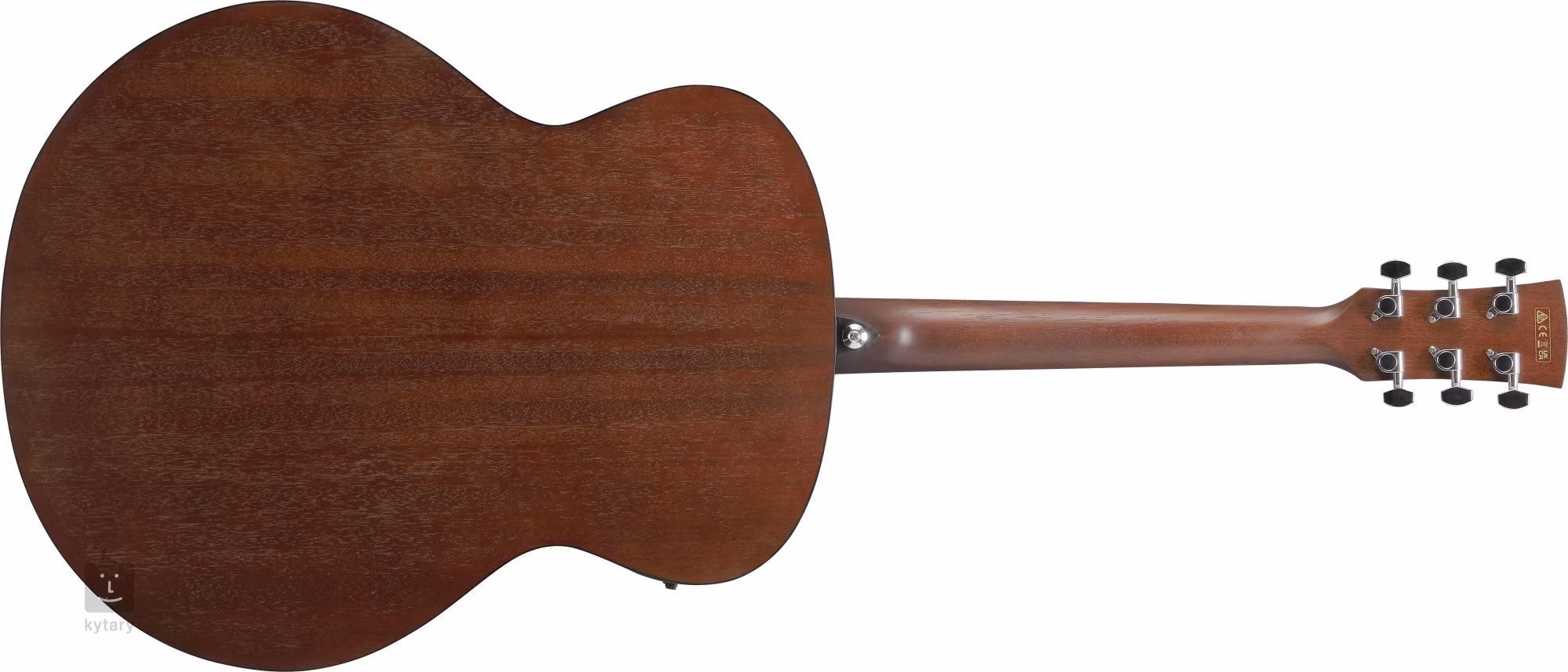 Elektroakustická gitara Ibanez PJ50E-OAH má masívne jumbo telo. Predná doska gitary je vyrobená z laminovaného smreka, zatiaľ čo zadná doska a luby sú z laminovaného meranti. Povrchová úprava Open Pore Vintage Amber Sunburst prednej dosky príjemne kontrastuje s prírodnou povrchovou úpravou zadnej dosky a lubov s otvorenými pórmi. Ku krku z meranti je prilepený hmatník z dreva nandu osadený dvadsiatimi pražcami. Biele pozičné bodky na hmatníku uľahčujú orientáciu.