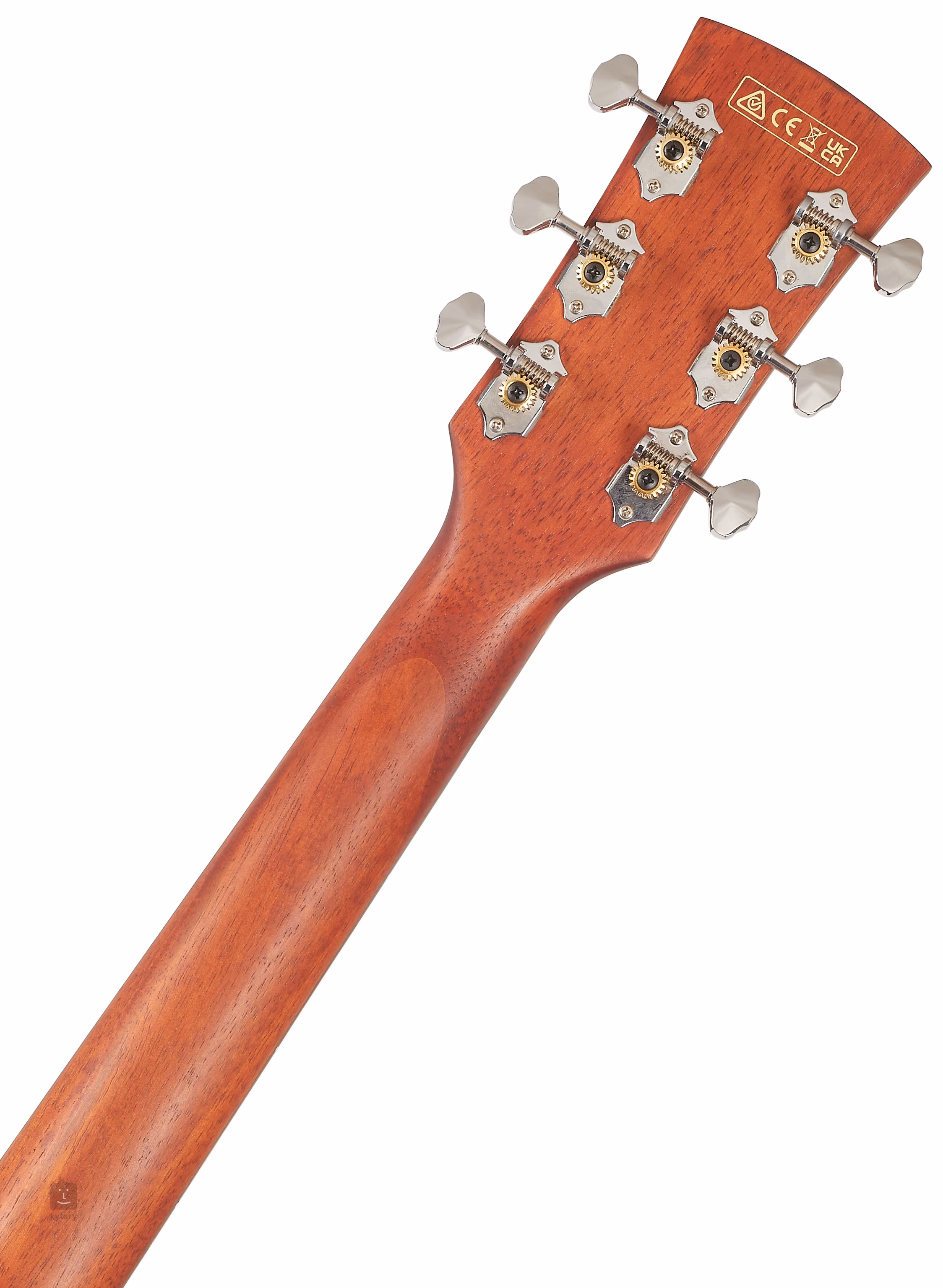 PN12MHE-OPN je elektroakustická gitara s kompaktným telom typu Parlor. Samotné telo gitary je vyrobené z laminovaného okoumé. Krk z exotického dreva nyatoh je prilepený k figovému hmatníku osadenému osemnástimi pražcami. Biele polohové bodky uľahčujú orientáciu na hmatníku.