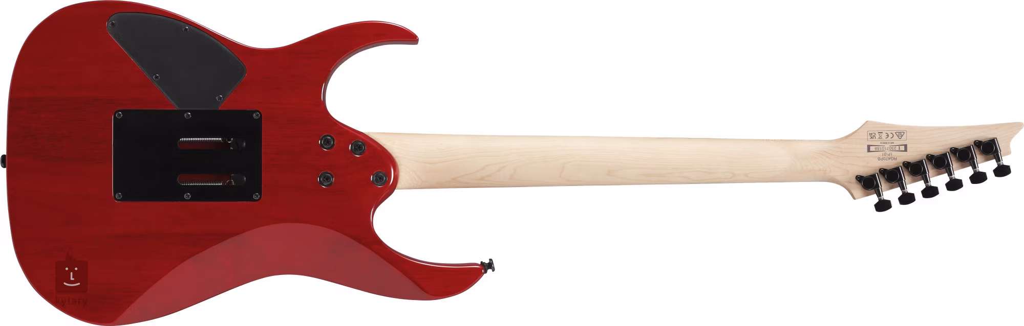Telo RG470PB-REB v prevedení meranti zdobí vrchná dýha z topoľového burelu. Rýchly javorový krk s profilom Wizard III je prilepený k jatobovému hmatníku s dvadsiatimi štyrmi jumbo pražcami. Biele polohové bodky na hmatníku uľahčujú orientáciu.