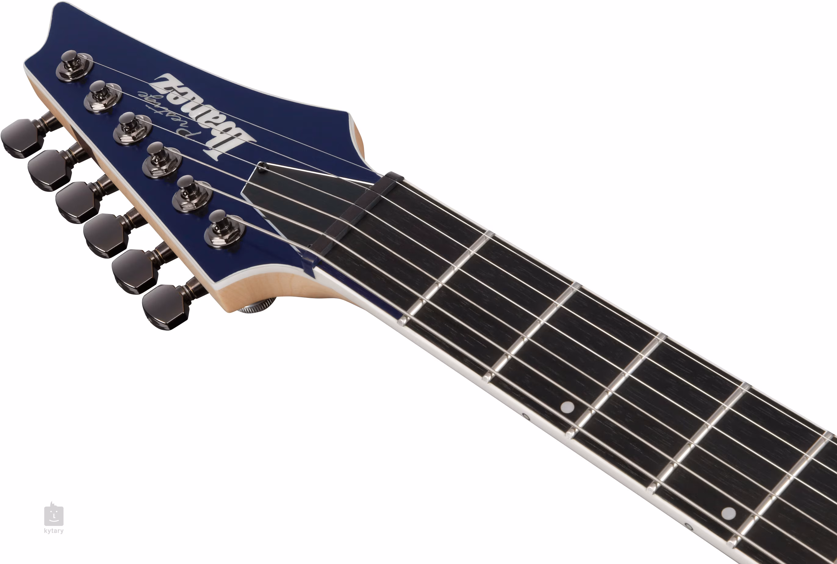 Ergonomicky tvarované telo elektrickej gitary RG5121R-DBF je vyrobené z afrického mahagónu. Rýchly krk, vyrobený z piatich kusov javora a wenge s profilom Super Wizard HP, je vybavený palisandrovým hmatníkom s dvadsiatimi štyrmi jumbo pražcami z nehrdzavejúcej ocele. Modifikované okraje pražcov poskytujú optimálny komfort pri hre (Prestige fret edge treatment). Posunuté perleťové polohové bodky a luminiscenčné bodky na boku uľahčujú orientáciu na hmatníku.