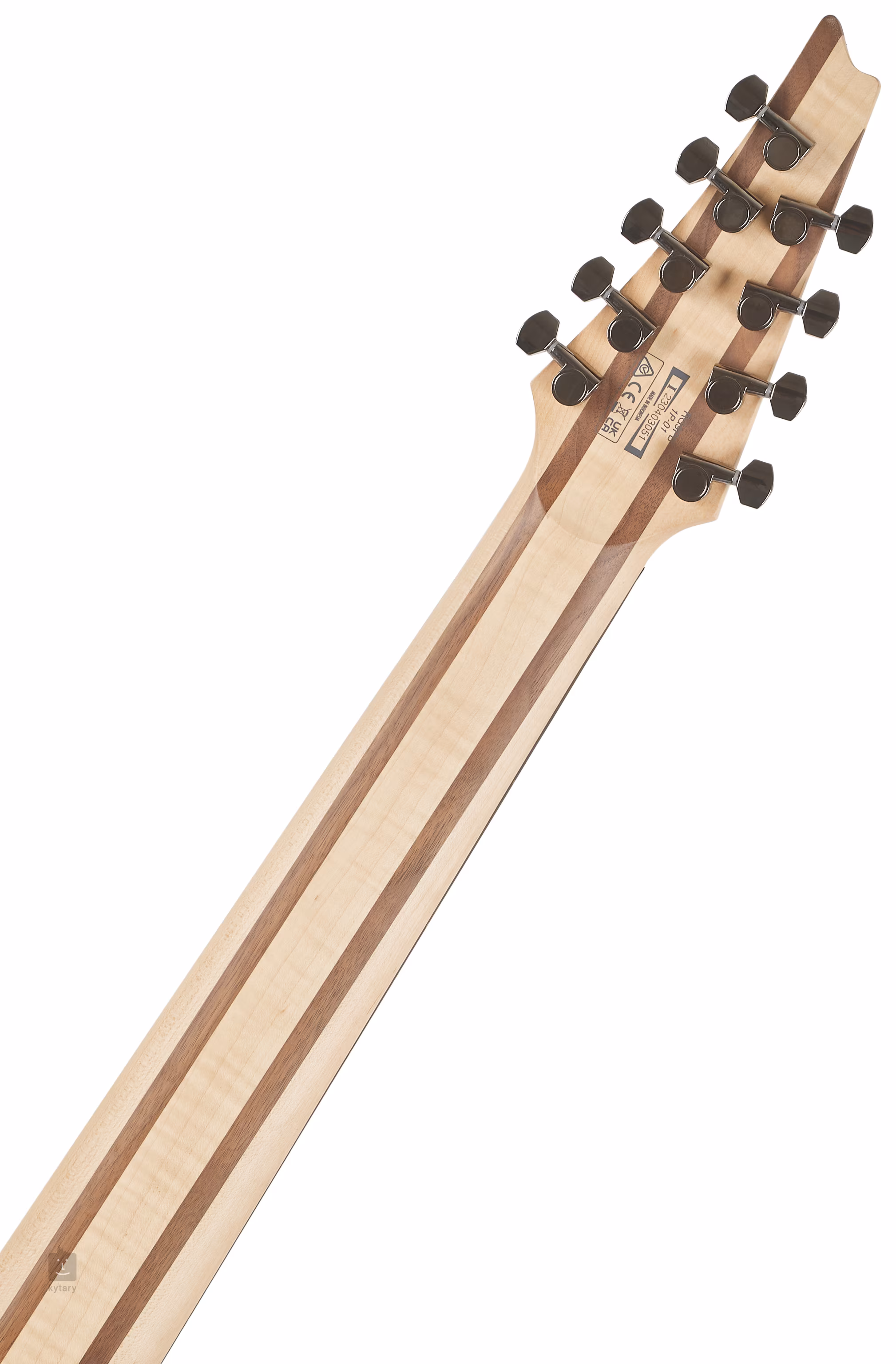Telo deväťstrunovej gitary RG9PB-TGF je vyrobené z masívneho dreva nyatoh a vrchnej dýhy z topoľového burelu. Päťdielny krk z javora a orecha s profilom Wizard-9 je priskrutkovaný k hmatníku z ebenového dreva Makassar osadenému dvadsiatimi štyrmi pražcami veľkosti jumbo. Deviatim strunám zodpovedá dlhšia menzúra nástroja (712 mm).
