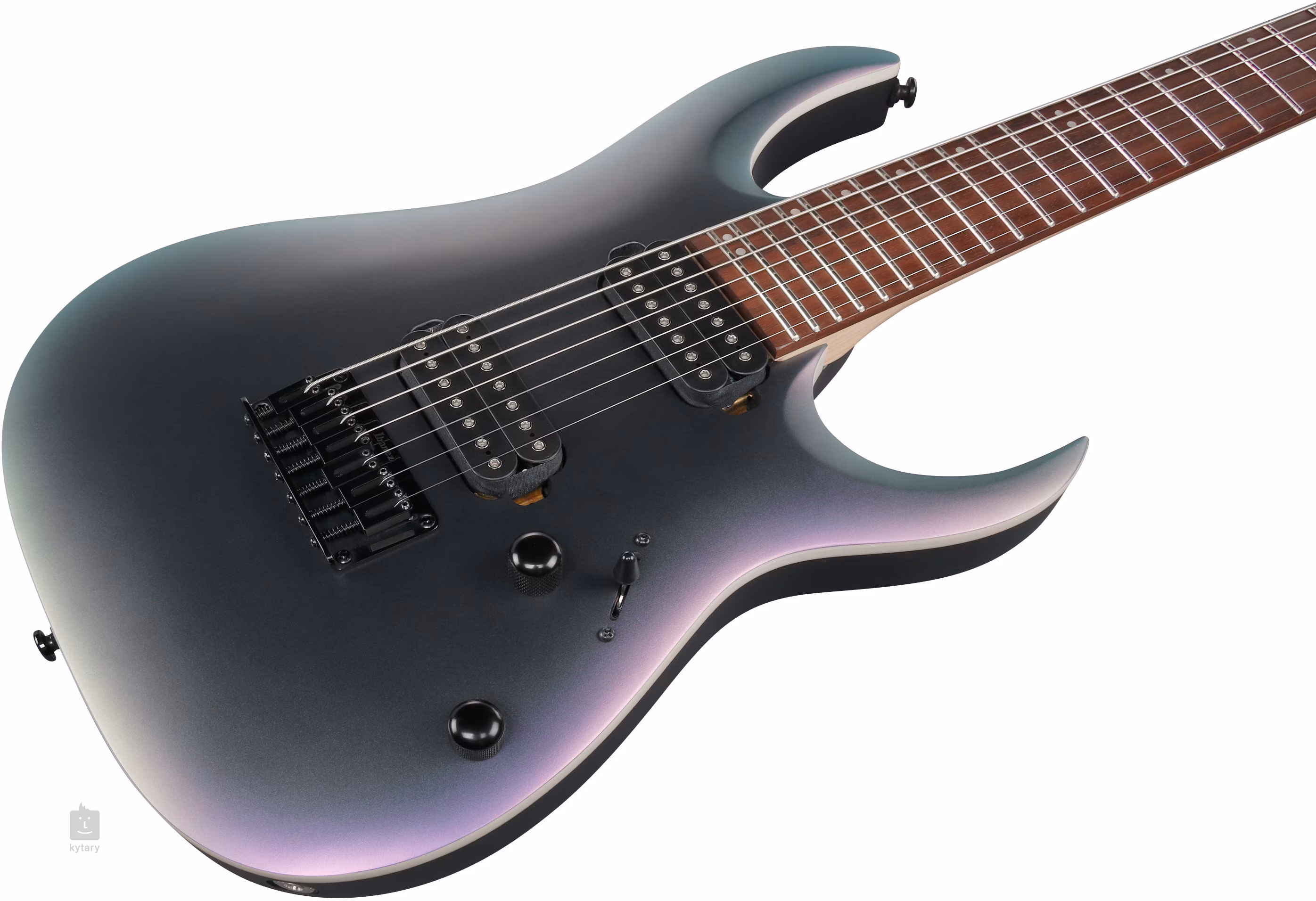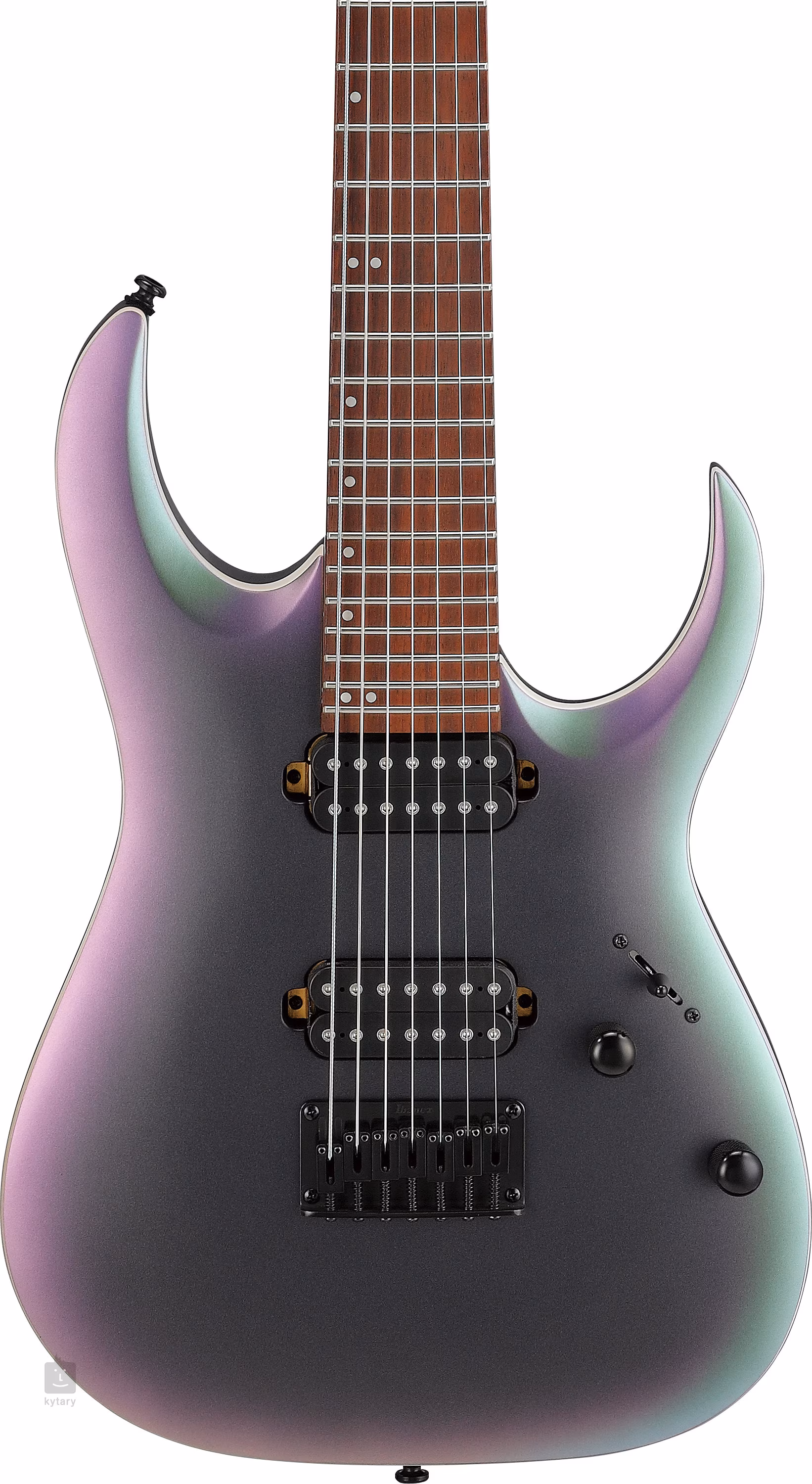 Telo sedemstrunovej elektrickej gitary RGA742EX-BAM je vyrobené z meranti dreva. Rýchly javorový krk s profilom Wizard II-7 je vybavený jatoba hmatníkom s dvadsiatimi štyrmi jumbo pražcami. Biela ofsetová poloha bodov uľahčuje orientáciu na hmatníku.