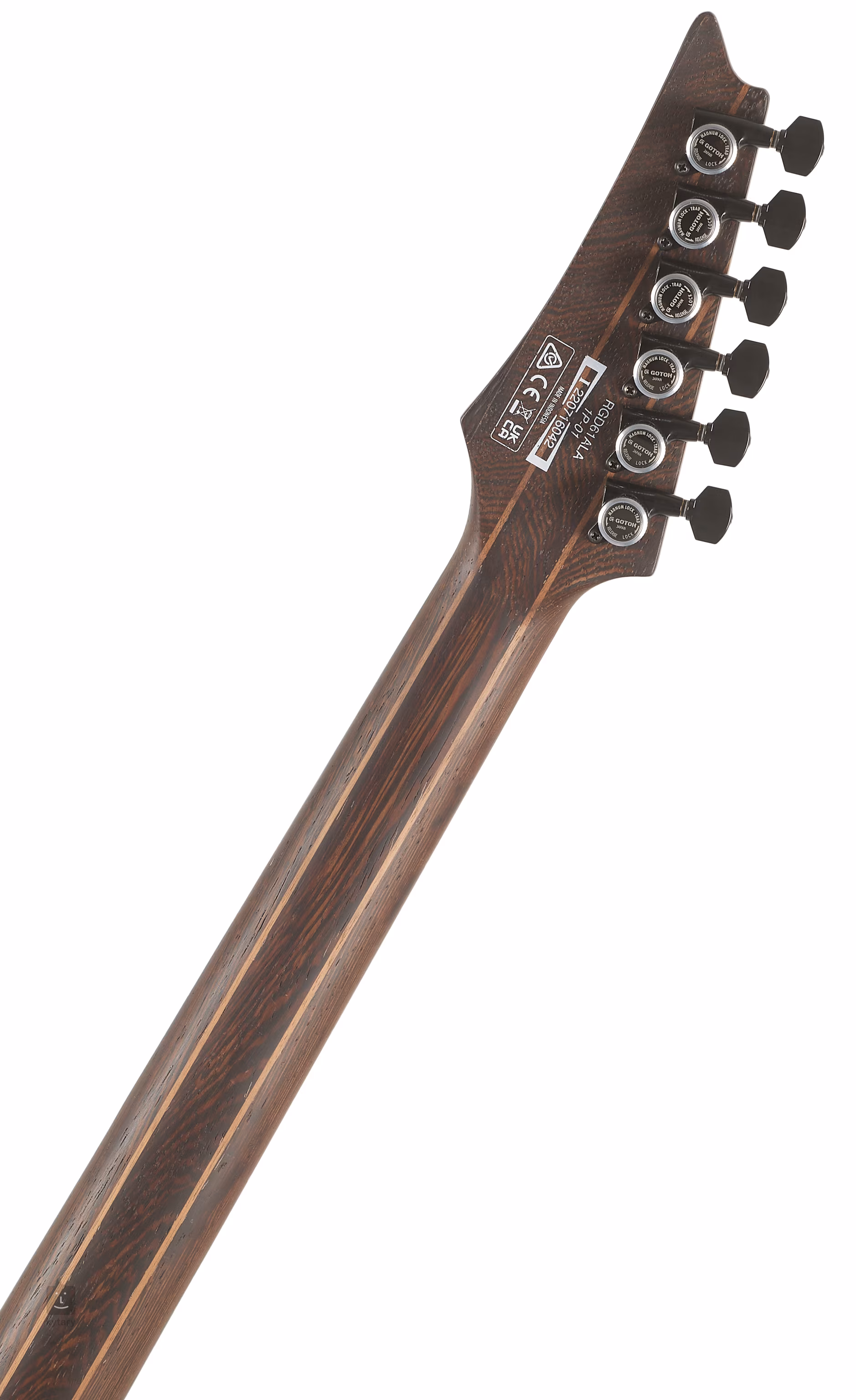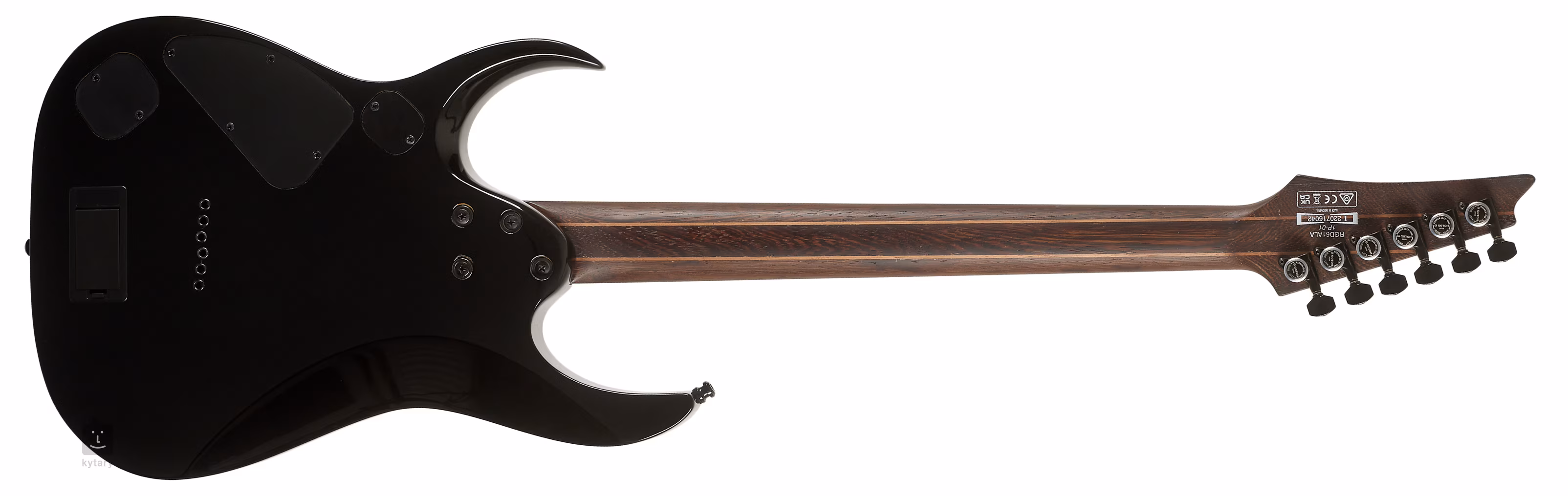 Telo modelu RGD61ALA-MTR je vyrobené z jaseňa. Ku krku, zloženému z piatich kusov orechov a panga panga, je prilepený ebenový hmatník z makasaru osadený dvadsiatimi štyrmi kryogénne upravenými pražcami veľkosti jumbo. Orientáciu po jeho povrchu uľahčujú biele posunuté polohové bodky a luminiscenčné značky na bočnej strane, vďaka ktorým budete mať dokonalý prehľad o pohybe na hmatníku aj v tmavom podsvietenom prostredí pódia. Vďaka dlhšej menzúre (673 mm) gitara bez problémov zvláda nižšie štandardné a drop ladenie.