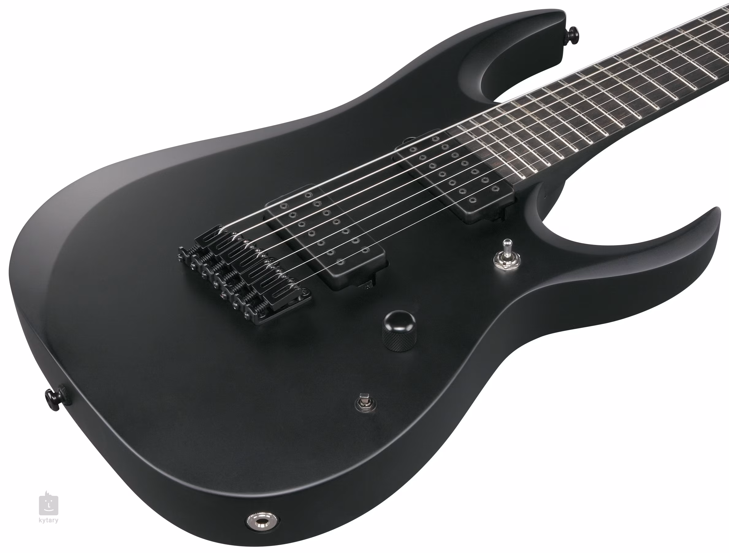 Telo sedemstrunovej gitary RGDRB71-BKF Iron Label je vyrobené z dreva nyatoh. Ebenový hmatník osadený dvadsiatimi štyrmi pražcami veľkosti jumbo je prilepený na skrutkovaný krk z "pečeného" javora s rýchlym profilom Wizard II-7. Luminiscenčné bočné bodky vám pomôžu zorientovať sa na hmatníku aj za šera.