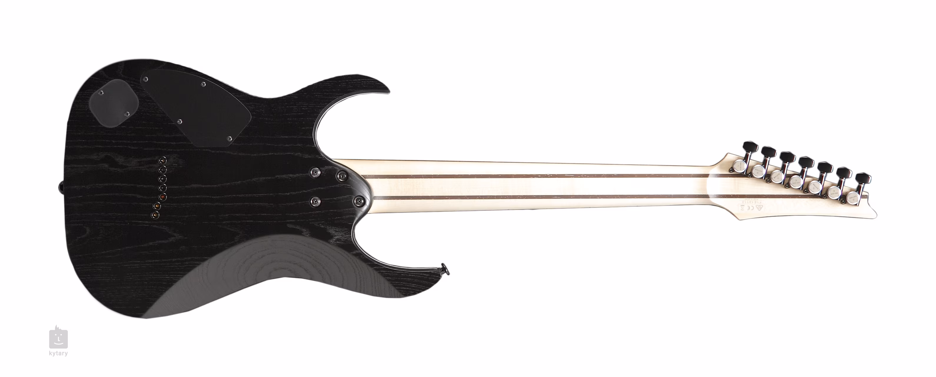 Telo sedemstrunovej gitary RGR752AHBF-WK je vyrobené z jaseňa. Krk s rýchlym profilom Wizard, zložený z piatich kusov javora a wenge, je osadený hmatníkom z ebenového dreva Makassar s dvadsiatimi štyrmi jumbo pražcami a úpravou hrán Prestige pre väčší komfort pri hre. Orientáciu na povrchu hmatníka uľahčujú biele pozičné bodky.