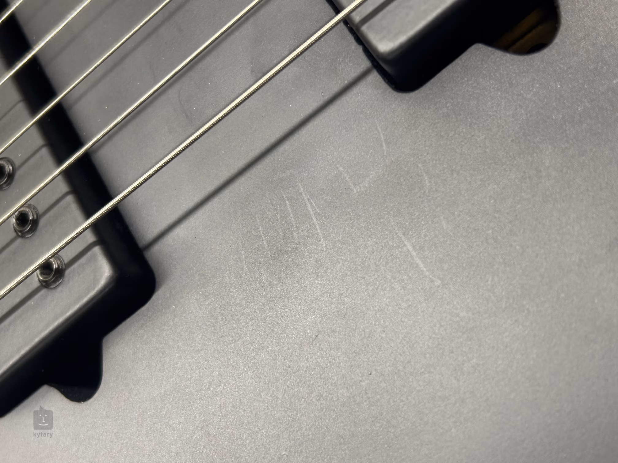 Telo modelu Iron Label RGRB620-BKF v dizajne RG Super ST je vyrobené z dreva nyatoh. Päťdielny krk z javora a orecha je priskrutkovaný k ebenovému hmatníku osadenému dvadsiatimi štyrmi pražcami veľkosti jumbo. Luminiscenčné bodky na bočnej strane vám pomôžu zorientovať sa aj za šera.