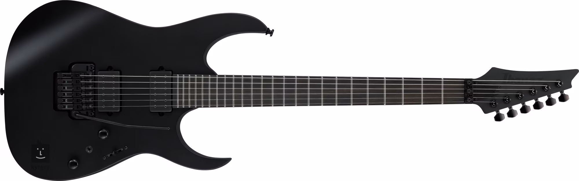 Telo modelu Iron Label RGRB620-BKF v dizajne RG Super ST je vyrobené z dreva nyatoh. Ebenový hmatník osadený dvadsiatimi štyrmi pražcami veľkosti jumbo je prilepený k priskrutkovanému päťdielnemu krku z javora a orecha. Luminiscenčné bodky na bočnej strane vám pomôžu zorientovať sa aj za šera.