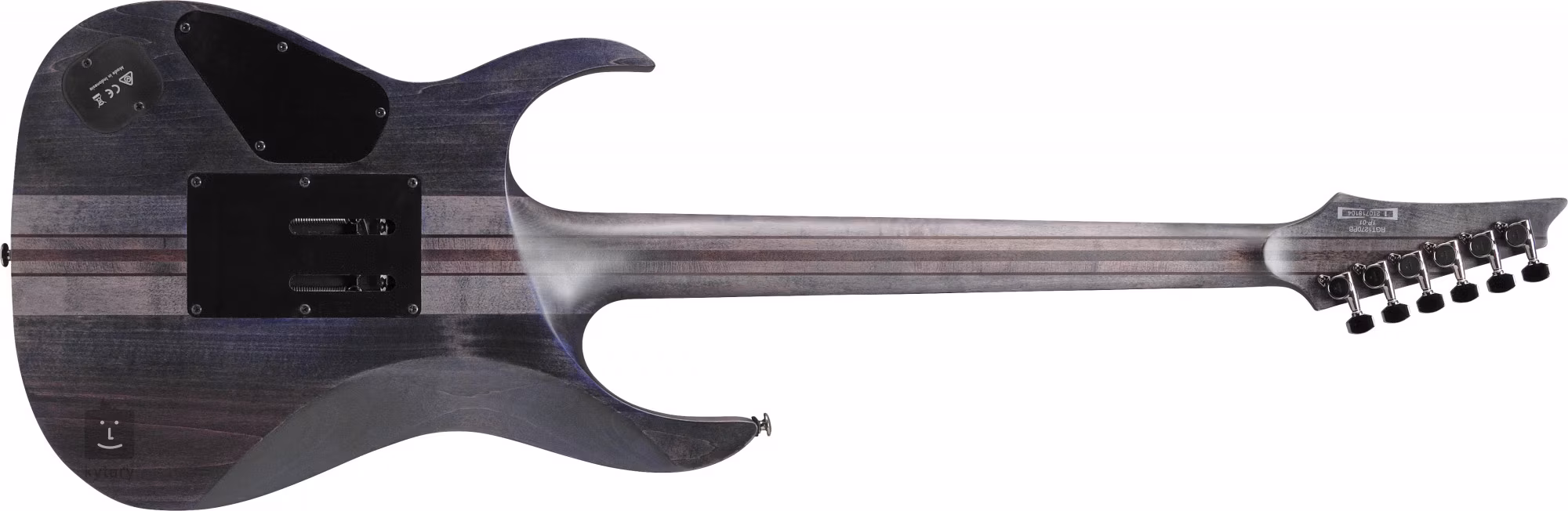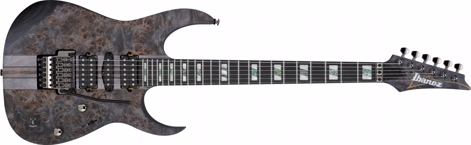 Lipové telo modelu RGT1270PB-DTF zdobí efektná vrchná doska z topoľovej koreňovej dyhy, ktorej kresbu dreva zvýrazňuje povrchová úprava Deep Twilight Flat. Tenký priechodný krk s profilom Wizard III je zložený zo siedmich kusov javora a orecha. Plochu ebenového hmatníka rozdeľuje dvadsaťštyri pražcov z nehrdzavejúcej ocele veľkosti Jumbo. Zaoblené hrany nultého pražca vám poskytnú väčší komfort pri hraní (Premium fret edge treatment), zatiaľ čo orientáciu po hmatníku uľahčujú bloky s imitáciou perlete a pravej perlete (Abalone) a svietiace bodky po stranách.