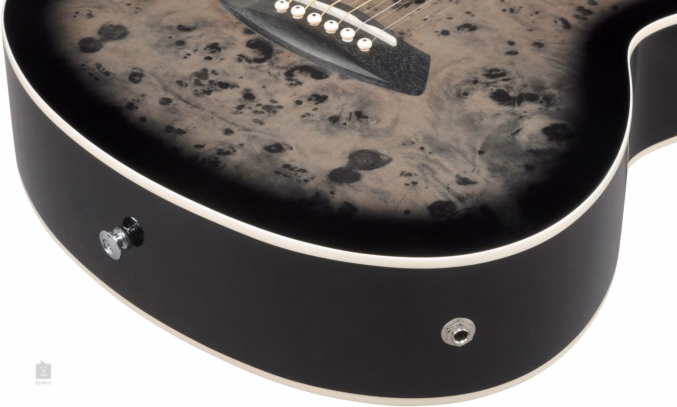 Vrchná doska gitary TCY10PA-BKB okamžite upúta pozornosť svojím umelým vzorom z topoľového burlu. Vzor je zdôraznený lesklým povrchom Transparent Brown Black Burst. Zadná doska a bočnice sú vyrobené z laminovaného sapele. Krk z okoumé je vybavený hmatníkom z purpleheart s dvadsiatimi pražcami.