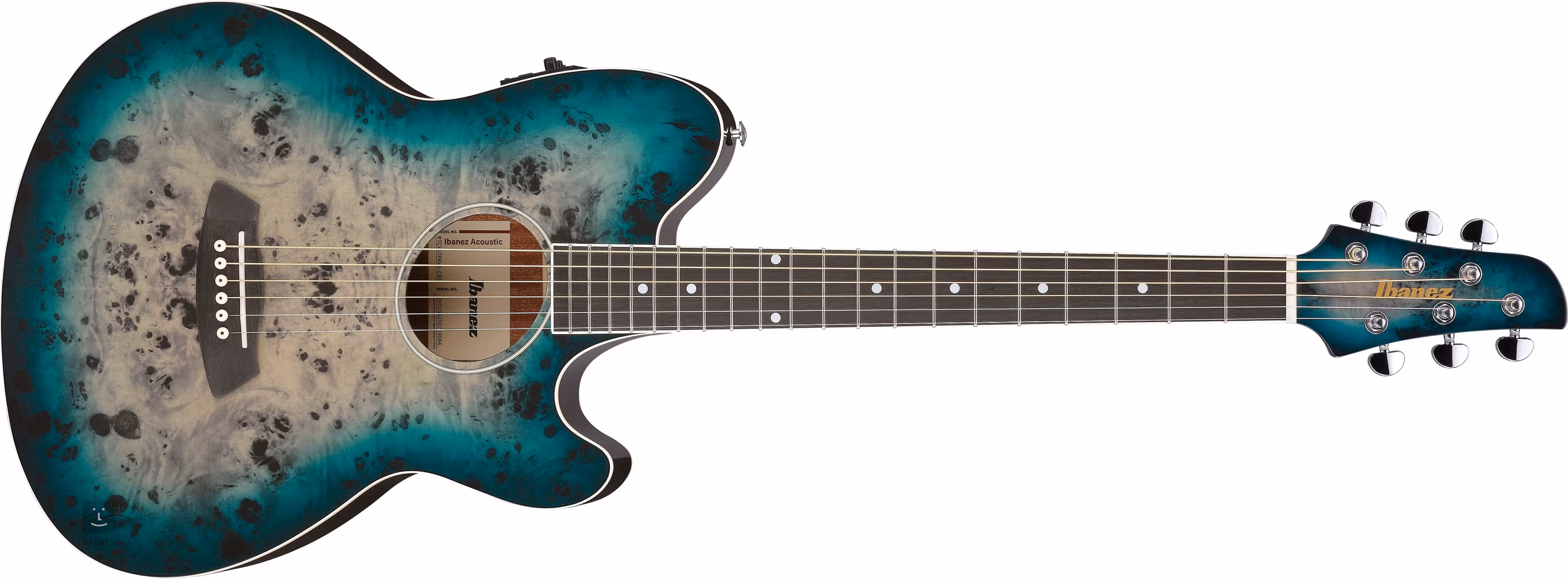 Horná doska gitary TCY10PA-CBS okamžite upúta pozornosť svojím vzorom z topolového burlu. Vzor je zdôraznený lesklým povrchom Cosmic Blue Starburst. Zadná doska a bočnice sú vyrobené z laminovaného sapele. Krk z okoumé je vybavený hmatníkom z purpleheart s dvadsiatimi pražcami.