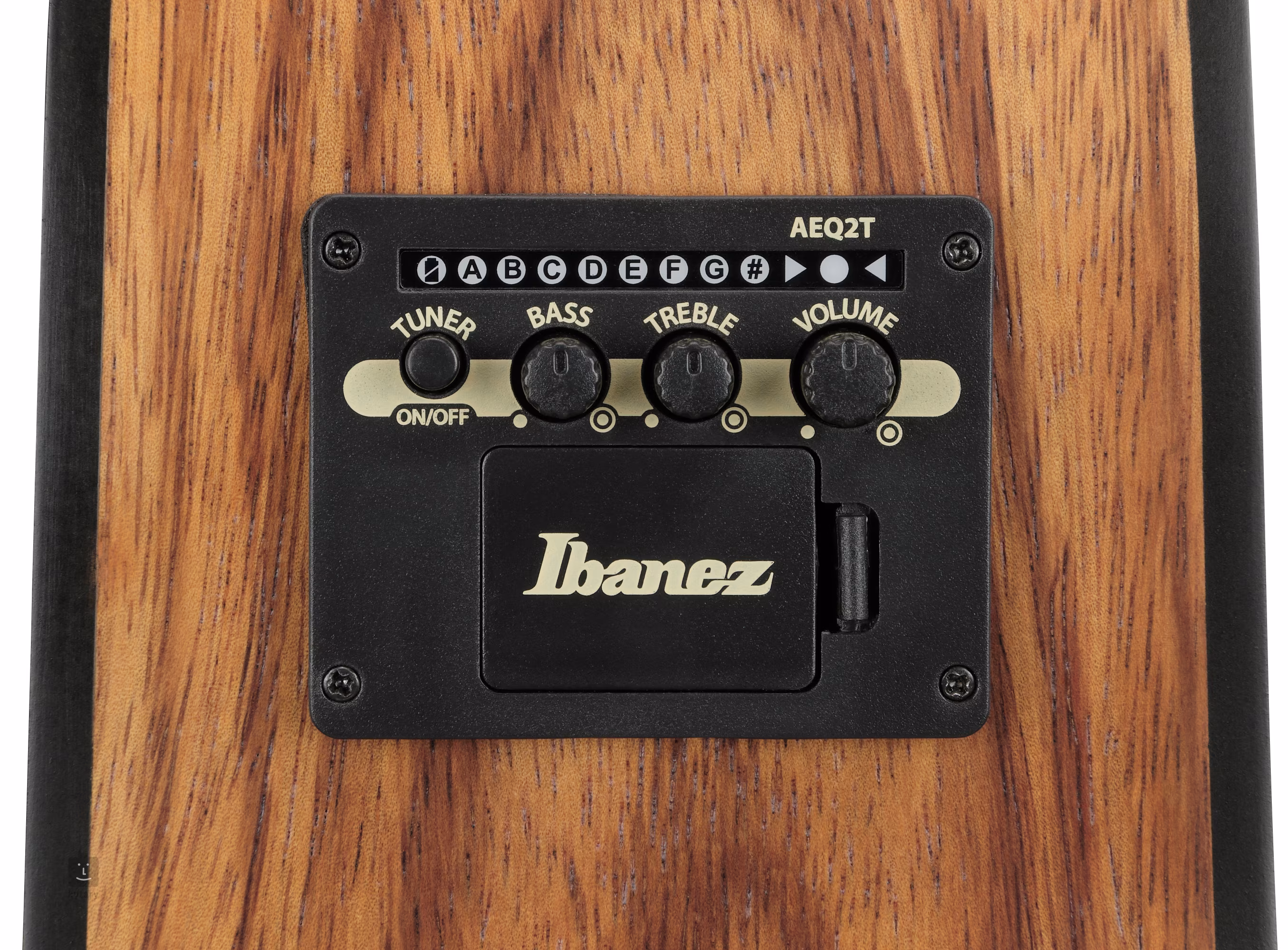 Ozvučenie nástroja zabezpečuje podkobylkový piezo snímač a predzosilňovač Ibanez AEQ-2T s dvojpásmovým ekvalizérom a vstavanou ladičkou. Struny sú osadené v chrómových ladiacich mechanikách a hmatníku z dreva nandu. Kolíky Ibanez Advantage ponúkajú oproti štandardným modelom výhody jednoduchej manipulácie a pevného uchytenia strún. Štýlové prevedenie podčiarkuje farebná úprava Open Pore Brown.