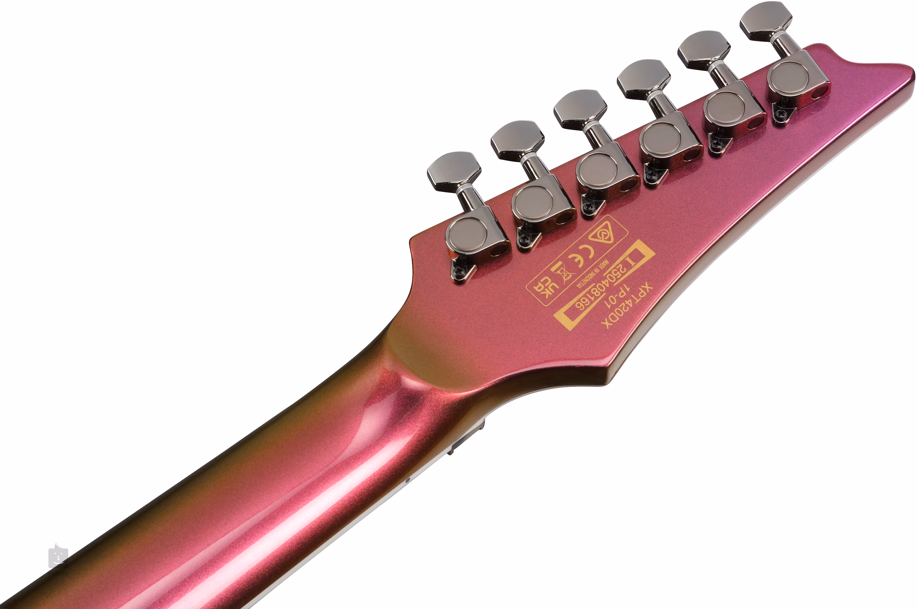 A čo môže byť viac metalové ako tvrdý a ťažký dizajn modelu Ibanez Xiphos z roku 2007, ktorý sa spája s gitaristami ako Muhammed Suiçmez (Necrophagist) a Scott Lepage (Polyphia). Konštrukcia modelu XPT420DX-RGC pozostáva z tela (krídel) z okoumé a rýchleho priebežného krku vyrobeného z piatich kusov javora a orecha. Palisandrový hmatník je vybavený dvadsiatimi štyrmi jumbo pražcami a štýlovými značkami polohy (obrátené žraločie zuby).