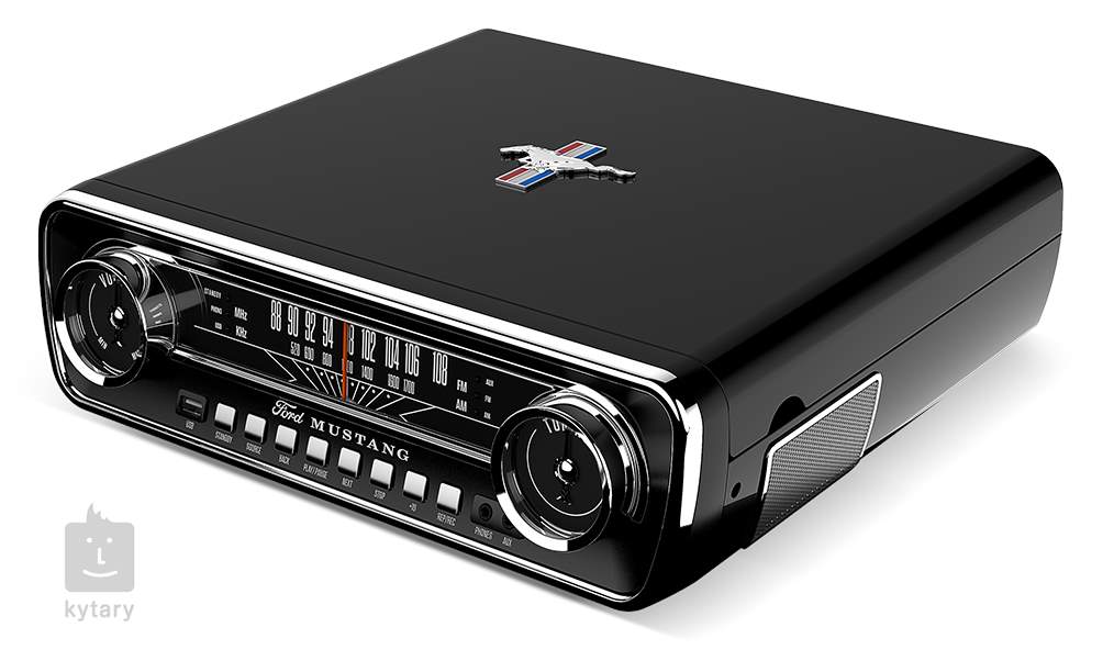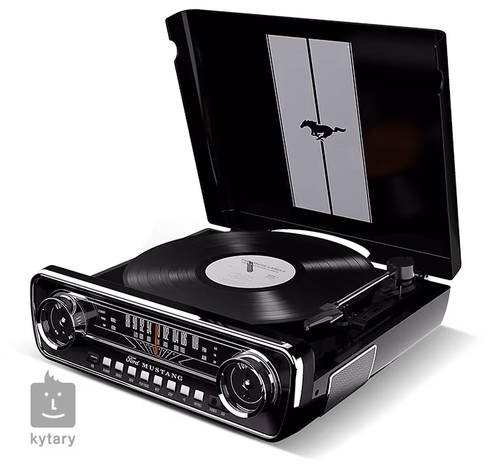 Mustang LP představuje vzrušující způsob, jak si můžete užít svou oblíbenou hudbu z LP desek. Multifunkční gramofon nabízí čtyři funkce v jednom. Gramofon přehraje všechny typy vašich desek, stačí, když si vyberete jednu ze tří rychlostí a zábava může začít. Hudba se rozezní ze zaubdovaných reproduktorů a vnitřní zesilovač zajistí pohodlný poslech bez nutnosti připojování jakéhokoliv externího reproduktoru. Co ale odlišuje Mustang LP od jiných gramofonů je luxusní ladič AM/FM rádia, který vypadá přesně jako tachometr v klasickém Mustangu z roku 1965. Hudební zábava nemá rychlostní limit, takže pořádně šlápněte na plyn.