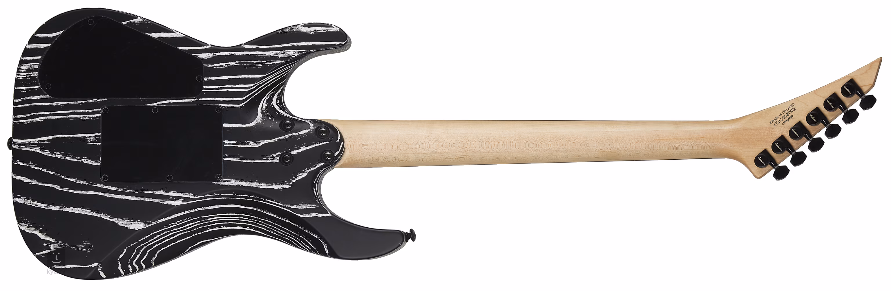 Jasanové telo tejto gitary zdobí efektná povrchová úprava Baked White. Ebenový hmatník osadený dvadsiatimi štyrmi pražcami veľkosti jumbo je prilepený k priskrutkovanému javorovému krku s grafitovou výstuhou. Jeho rádius sa smerom k telu splošťuje - umožňuje tak pohodlné riffovanie na nultom pražci, ako aj pohodlný ultra-rýchly shred vo vyšších polohách. Orientáciu na povrchu hmatníka uľahčujú posunuté polohové bodky z imitácie perlete.
