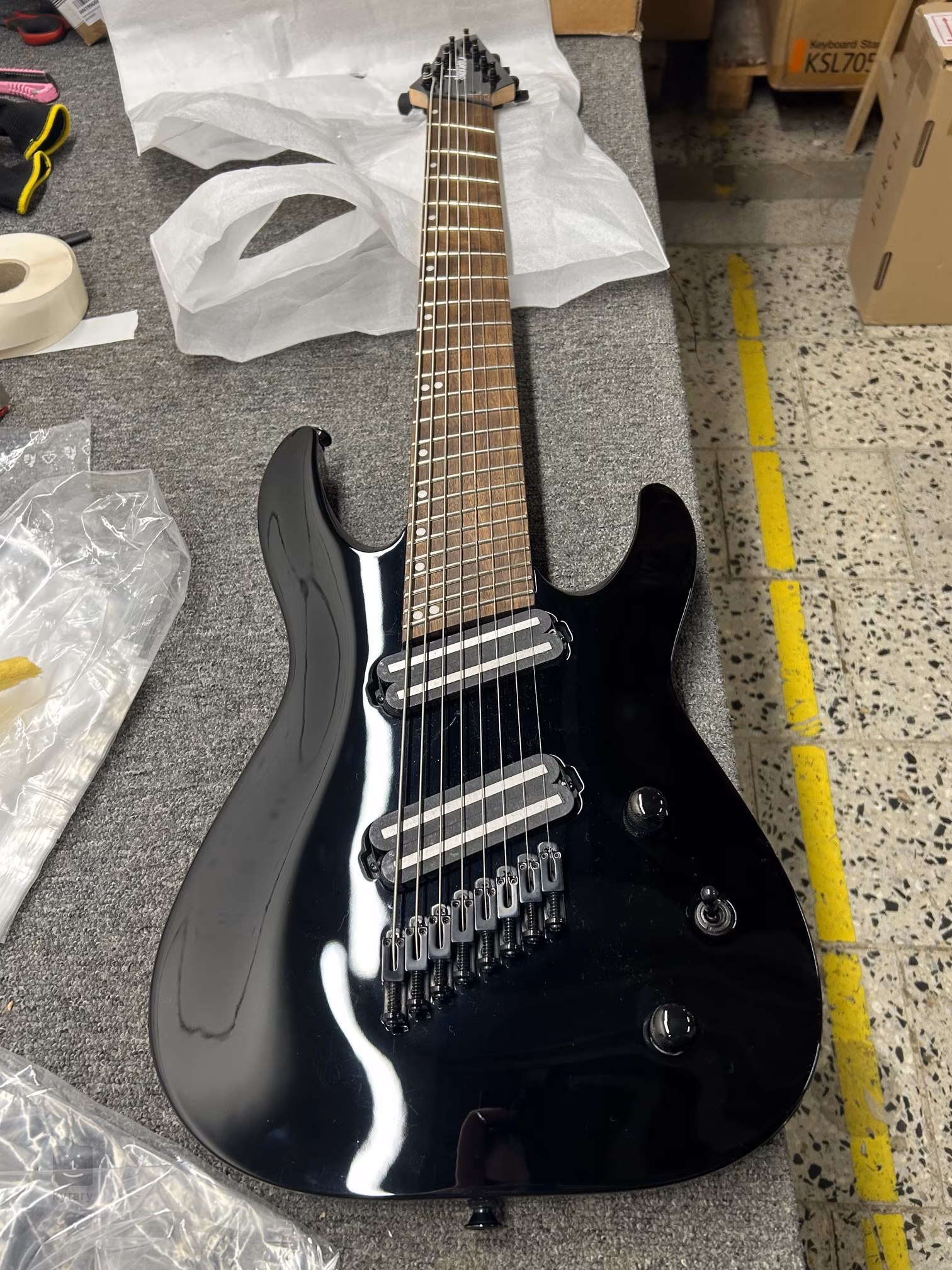 Telo tejto osemstrunovej gitary je vyrobené z mahagónu. Jednodielny javorový krk s grafitovou výstuhou je pripevnený k hmatníku z figového dreva osadenému dvadsiatimi štyrmi pražcami veľkosti jumbo. V súčasnosti obľúbená koncepcia Muti-scale, t. j. osadenie hmatníka diagonálne umiestnenými pražcami, poskytuje nástroju variabilnú menzúru (660 mm - 711 mm) a optimálne napätie. Podľa názoru niektorých hudobníkov umožňuje aj prirodzenejší pohyb ruky po hmatníku. Kombinovaný rádius hmatníka potom umožňuje pohodlné riffovanie na nultom pražci aj pohodlný ultra rýchly shred vo vyšších polohách.
