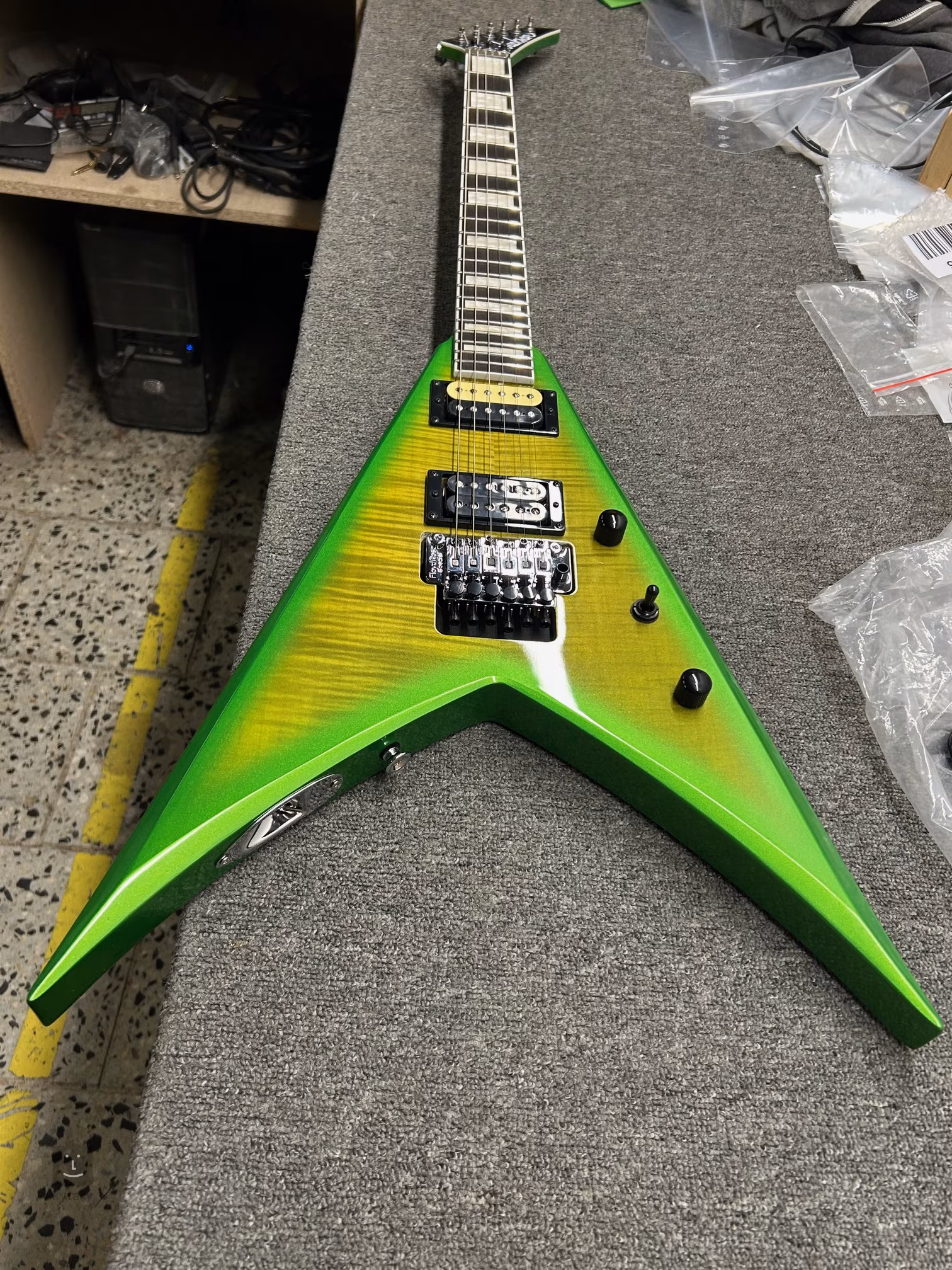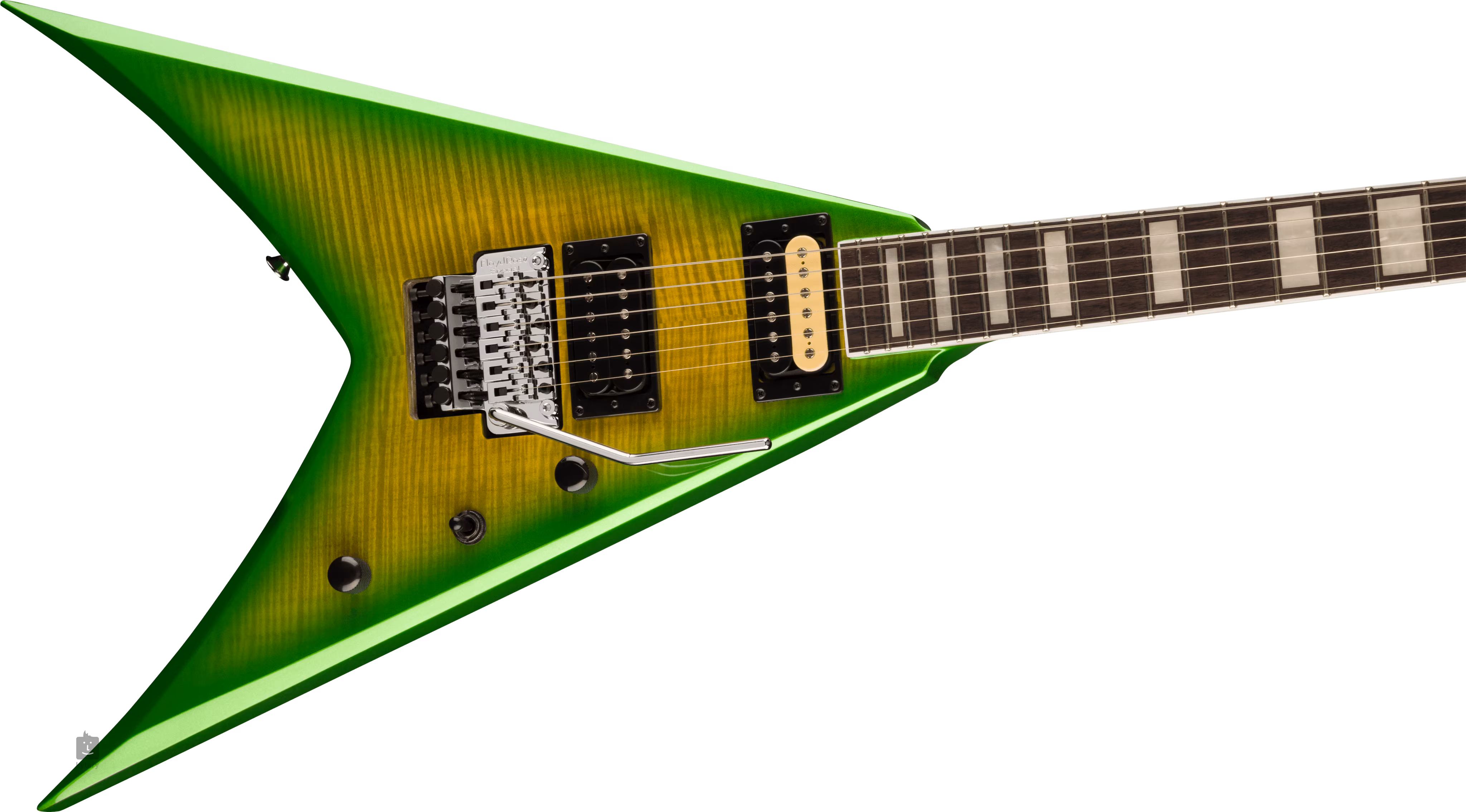 Dva proprietárne humbuckery s keramickými magnetmi a vysokým výkonom dodávajú gitare šťavnatý zvuk, ktorý je tak potrebný v metalovej a rockovej hudbe. Na nastavenie zvuku slúžia ovládače hlasitosti a tónu a trojpolohový prepínač snímačov. Struny sú ukotvené v liatych ladiacich mechanikách značky a tremole Floyd Rose Special, ktoré môžete použiť na oživenie svojej hry pôsobivými zvukovými efektmi. Štýlový vzhľad gitary dotvára pôsobivá farebná úprava javorového vrchného dielu a chrómový hardvér.