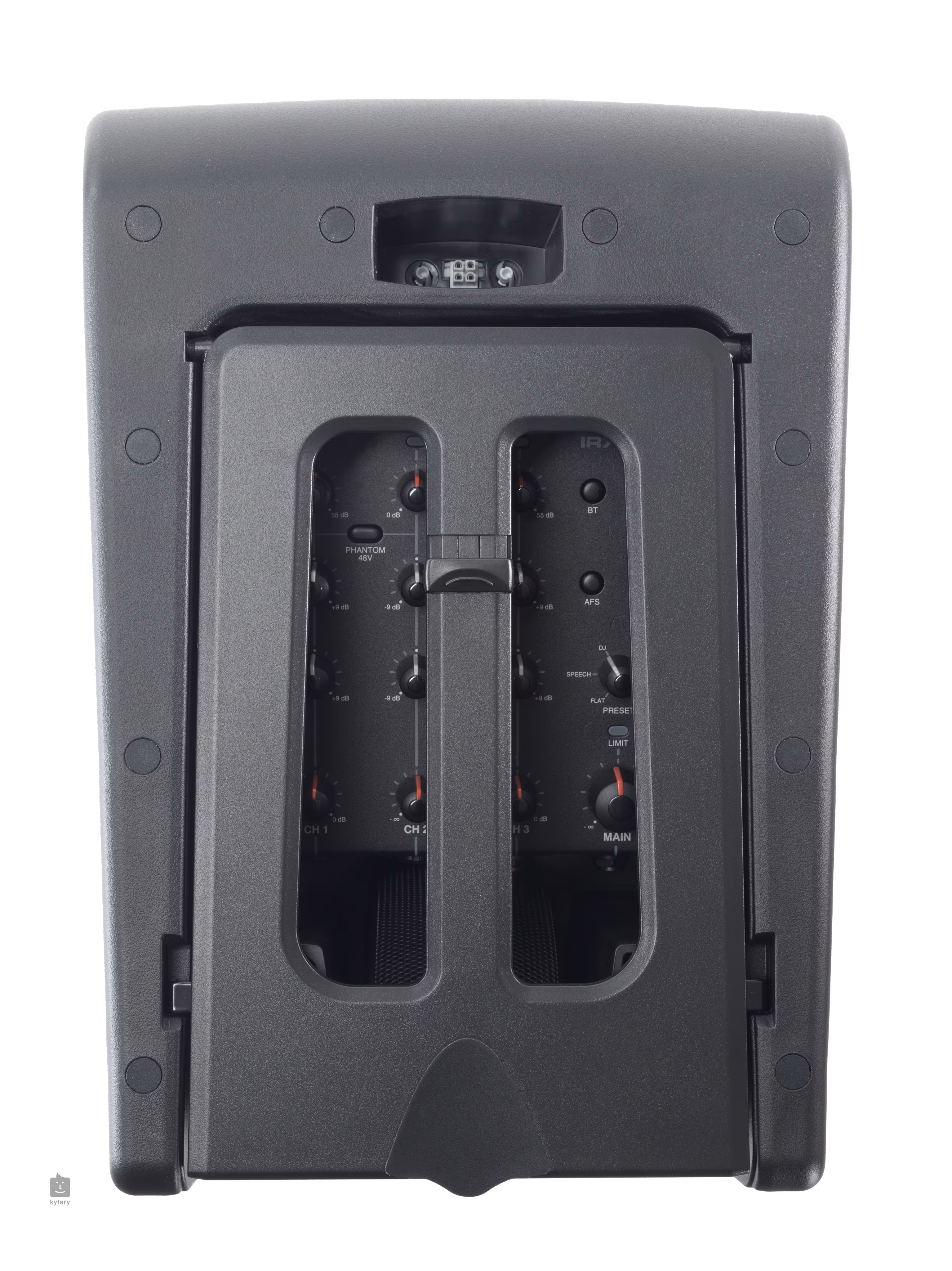 Zvukový systém JBL IRX ONE obsahuje osempalcový subwoofer s bassreflexom, šesť dvojpalcových meničov, vstavaný trojkanálový mix, pevné ovládanie basov a výšok, automatické potlačenie spätnej väzby (AFS), fantómové napájanie (48 V) na prvých dvoch kanáloch s kombinovanými vstupmi XLR/TRS, päť predvolieb ekvalizéra, vyvážený výstup mixpultu s konektorom Jack 6,3 mm a Bluetooth 5.0 na streamovanie zvuku.