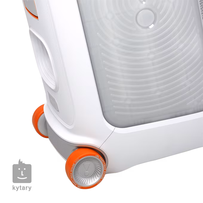 Teleskopická rukoväť a široké, robustné kolieska Svoj Partybox môžete ľahko vziať kamkoľvek vďaka širokým, robustným kolieskam a pohodlnej a praktickej teleskopickej rukoväti, ktorú môžete vysunúť nahor, keď ju potrebujete, alebo ju nechať spustenú.