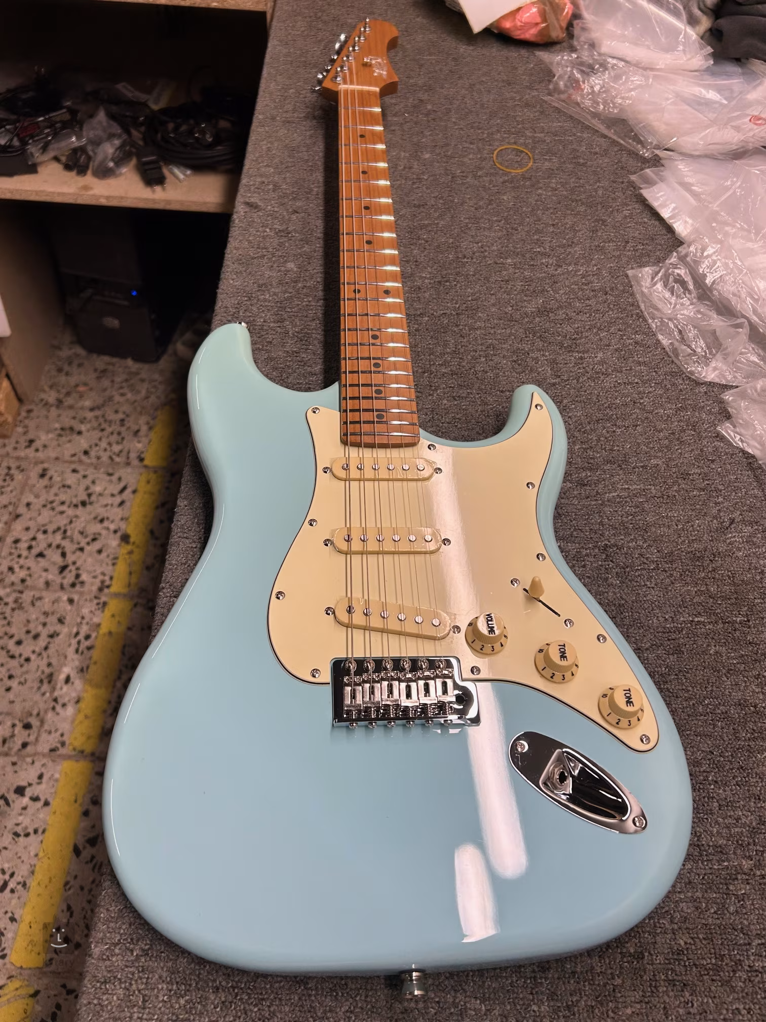 Tři single-coil snímače poskytují kytaře tradiční feel a údernost ST modelů. Charakter zvuku lze tvarovat pomocí potenciometru hlasitosti, dvou tónových clon a pětipolohovým přepínačem snímačů. Struny jsou přes nultý pražec z kosti ukotveny v chromovaných ladicích mechanikách a synchronizovaném tremolu. Stylový vzhled kytary podtrhuje světlý pickguard.