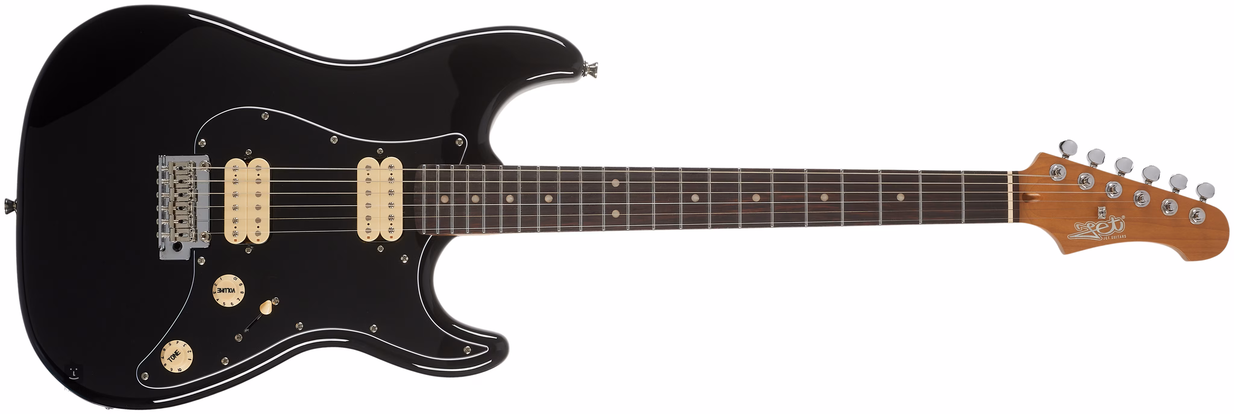 Klasický zvonivý zvuk single-coil snímačov je v gitare Jet JS-400 BKR H nahradený hustejším, plnším zvukom humbuckerov s keramickými magnetmi. Zvukové kontúry si môžete prispôsobiť podľa svojich potrieb pomocou ovládačov hlasitosti a tónu a trojpolohového prepínača snímačov. Struny sú ukotvené v chrómových ladiacich mechanikách a synchronizovanom tremole. Štýlový vzhľad gitary podčiarkuje čierny chránič.