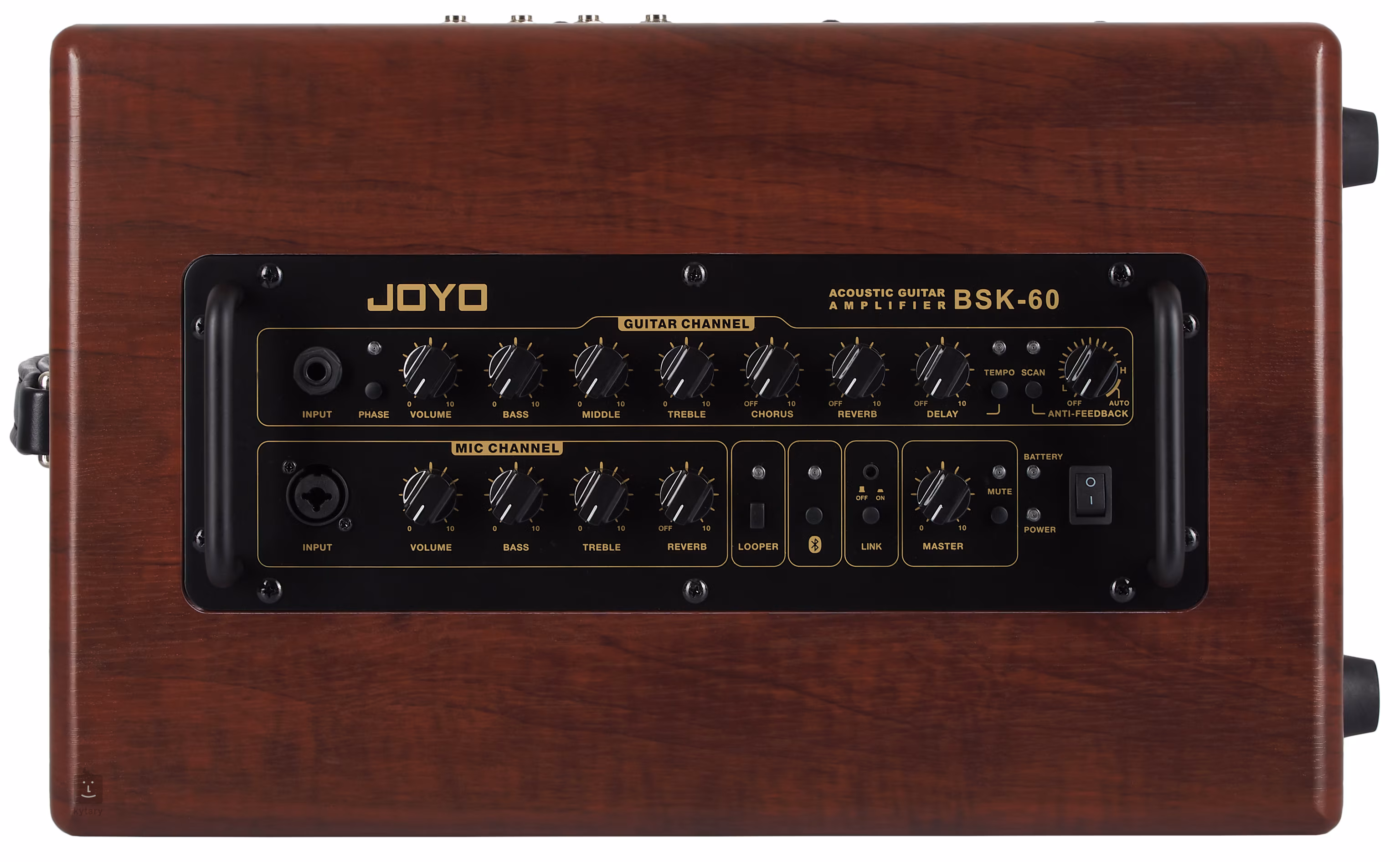 Joyo BSK-60 je kombo pre akustické nástroje s výkonom 60 W a dvoma kanálmi (gitara a spev), ktoré je vďaka celej rade užitočných funkcií skvelou voľbou pre pesničkárov, pouličných hudobníkov a pravidelných členov hudobných skupín.