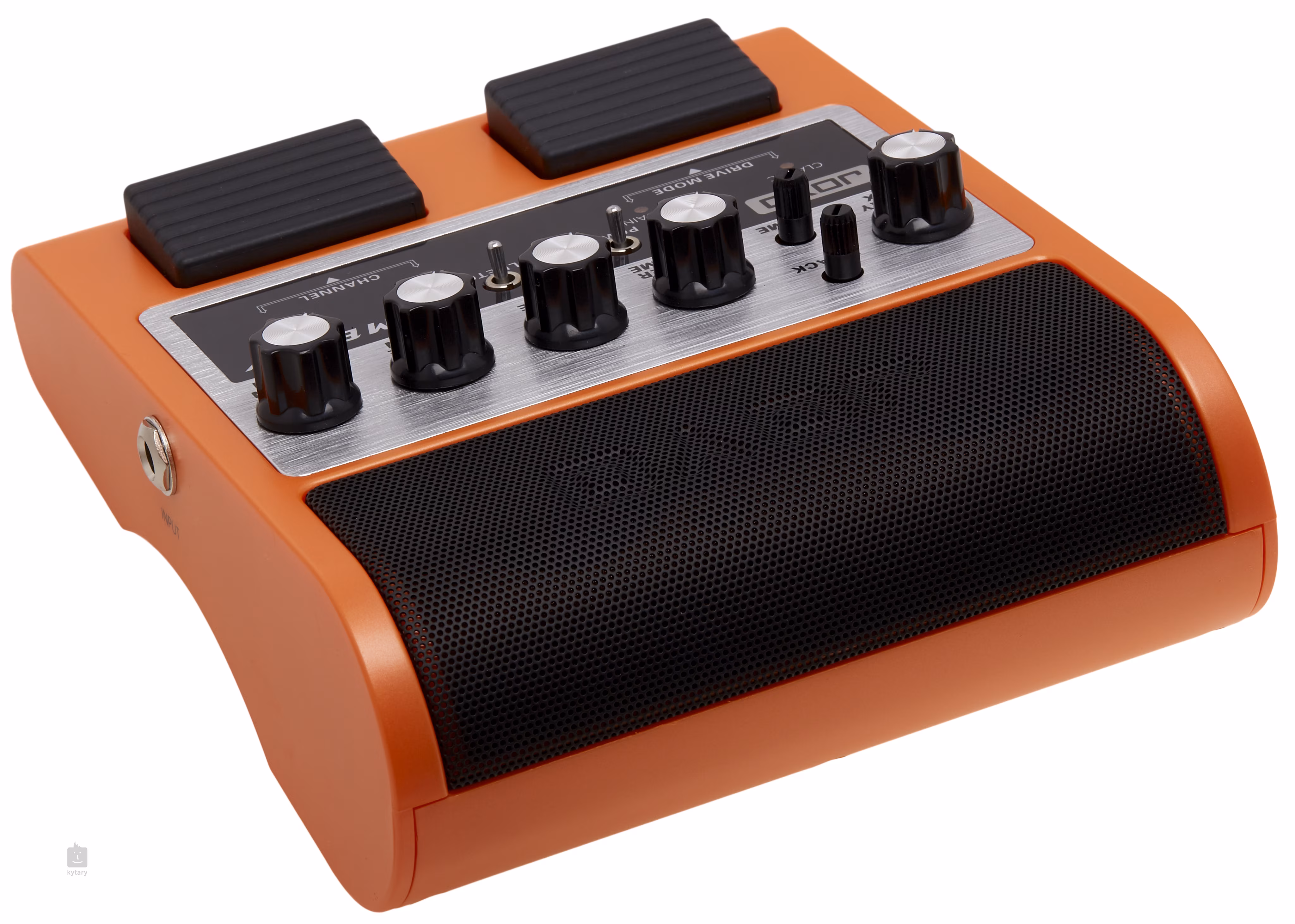 Jam Buddy od Joyo je ultrakompaktný gitarový kombo v pedálovom formáte, ktorý je skvelý na cvičenie doma, tiché hranie so slúchadlami alebo jamovanie s akýmkoľvek hudobným sprievodom. Kombinácia je vybavená dvoma 2" 4 W reproduktormi, ktoré poskytujú vernú reprodukciu zvuku, a má dva kanály – Clean a Drive. Zatiaľ čo režim Clean vám poskytuje krištáľovo čistý zvuk, kanál Drive vám umožňuje vybrať si medzi hladším bluesovým skreslením (Classic) a agresívnym zvukom s vysokým zosilnením (Hi Gain). To znamená, že bluesmani, rockeri aj metalisti si nájdu niečo, čo vyhovuje ich vkusu.
