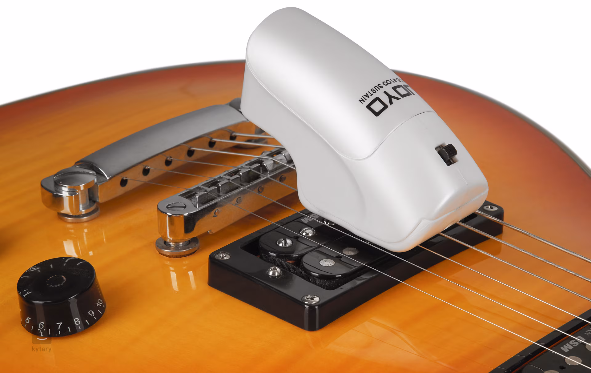 Joyo JGE-01 je elektromagnetické zariadenie (Infinte Sustainer), ktoré umožňuje strunám vibrovať ľubovoľne dlho. Jeho pripojením môžete dosiahnuť syntetizátorové zvuky s nekonečným sustainom. Zariadenie ponúka dva typy efektov (normálny/overtone) prepínateľné prepínačom. Na napájanie sa používa 9V batéria.