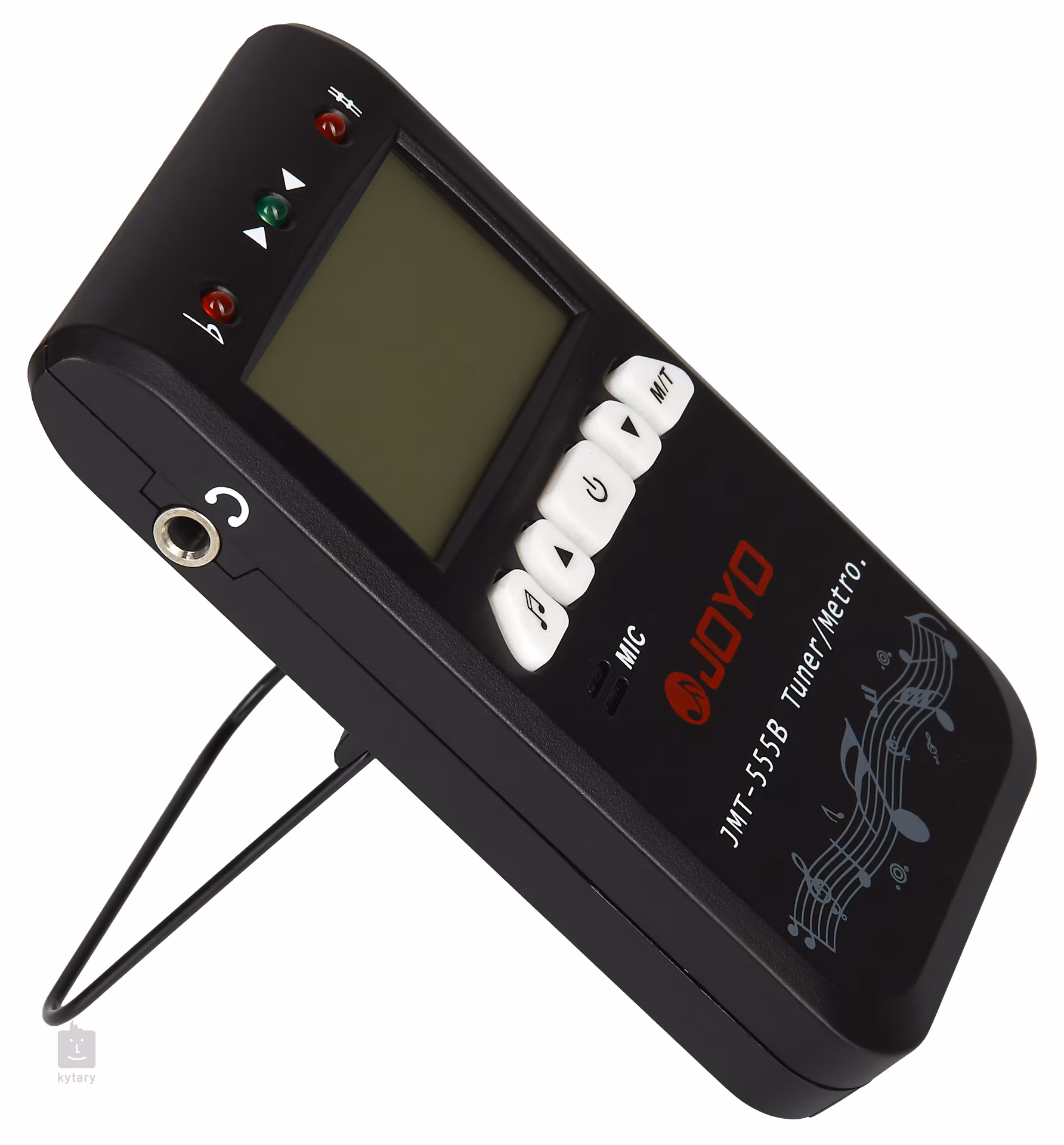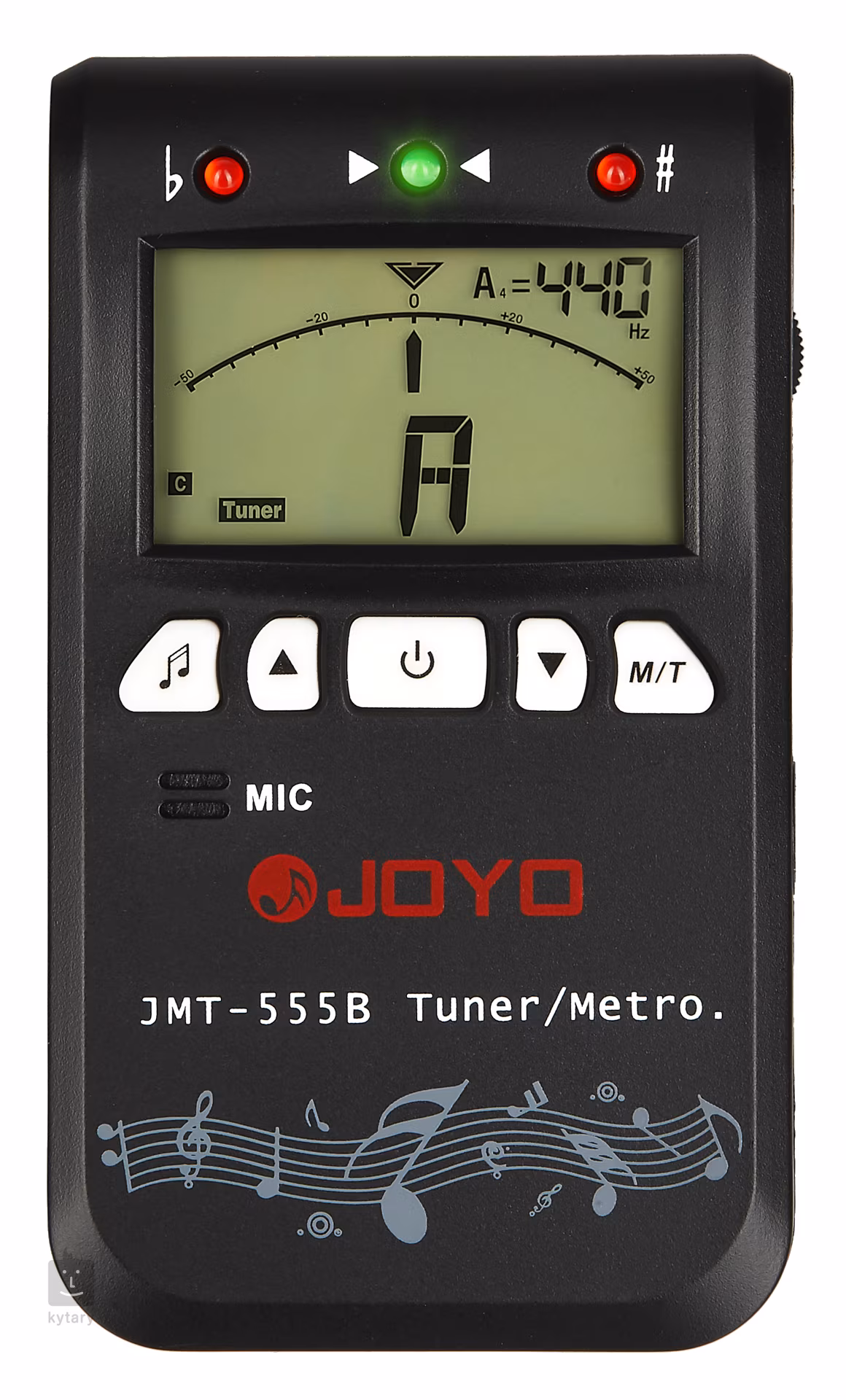Joyo JMT-555B je všestranný hudobný pomocník, ktorý úspešne kombinuje ladičku, metronóm a generátor tónov. Táto verzia je vhodná pre všetky strunové nástroje, ktoré dokáže naladiť s obdivuhodnou presnosťou vďaka chromatickému režimu a vysokej citlivosti. Na ladenie môžete použiť pripínací kontaktný mikrofón alebo mikrofón zabudovaný priamo v ladičke a k dispozícii sú špeciálne režimy pre gitaru, basgitaru, ukulele a husle. Metronóm umožňuje jednoduché zmeny tempa v širokom rozsahu a ponúka celkom desať rôznych taktov. Veľký, podsvietený displej zaručuje ľahkú čitateľnosť a napájanie zabezpečuje dvojica batérií AAA, ktoré sú súčasťou balenia.