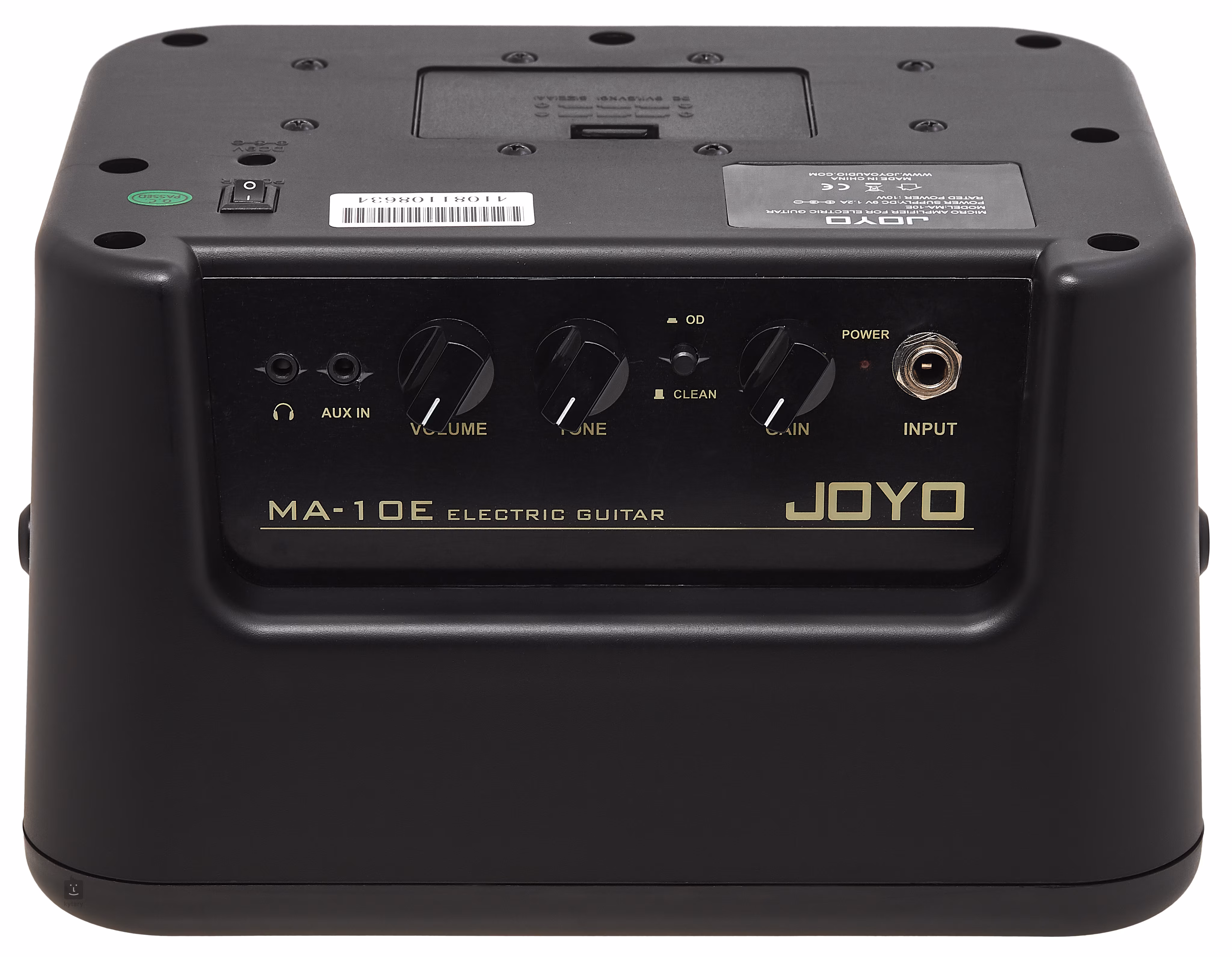 Tranzistorové mini elektrické gitarové kombo Joyo zo série MA-10 je ideálny nástroj na cesty alebo domáce cvičenie. Ponúka výkon 10 W, dva kanály (Clean/OD) pre milovníkov čistého a skresleného gitarového zvuku, intuitívne ovládanie a dve užitočné funkcie - vstup Aux In na pripojenie externých audio/MP3 zariadení a slúchadlový výstup. Vďaka možnosti napájania z batérií (6x AA) môžete cez kombo hrať aj na miestach bez prívodu elektrickej energie, štandardné napájanie zabezpečuje priložený 9V 1200mA adaptér. Bočné úchyty umožňujú pripevniť ku kombu popruh (nie je súčasťou dodávky).