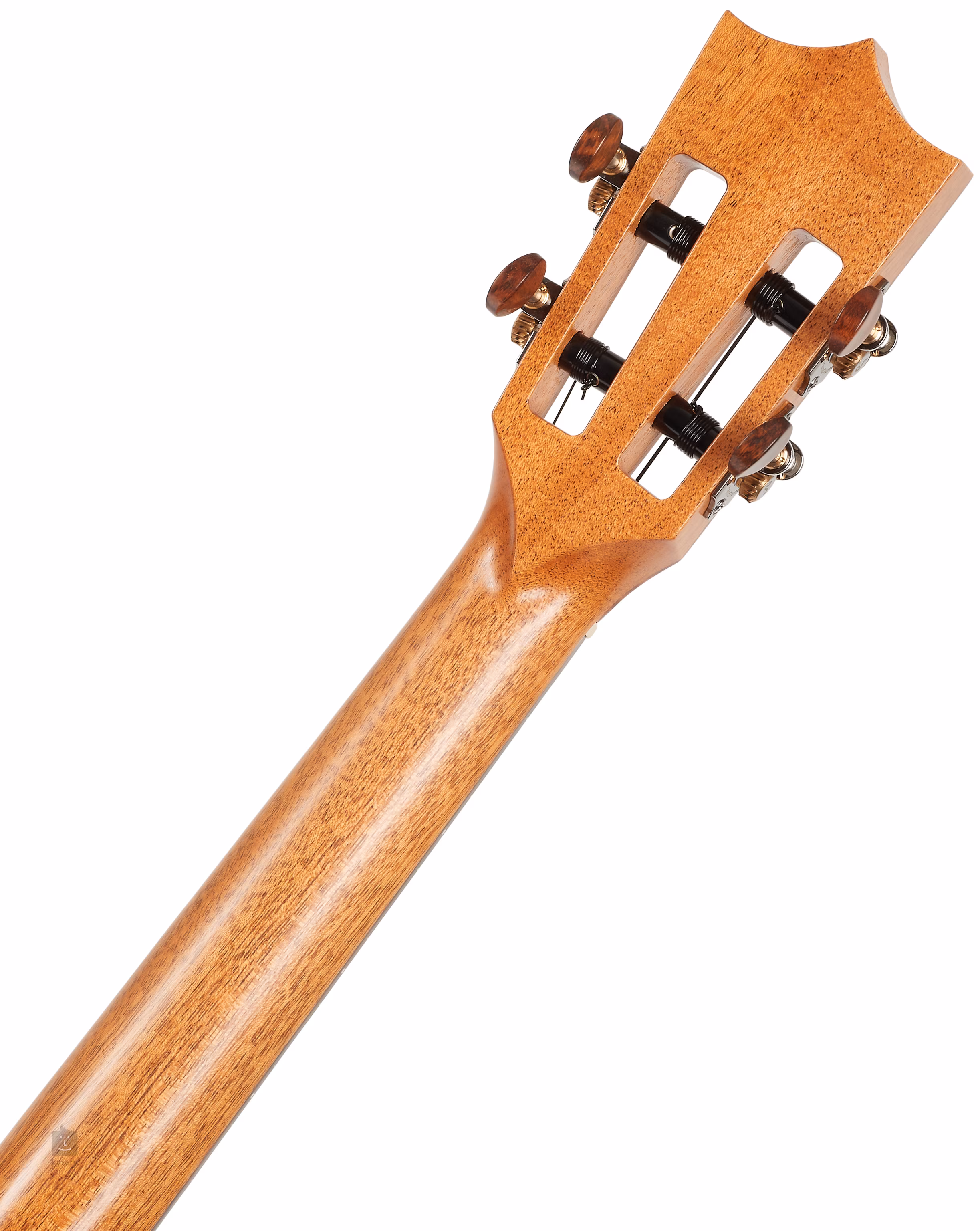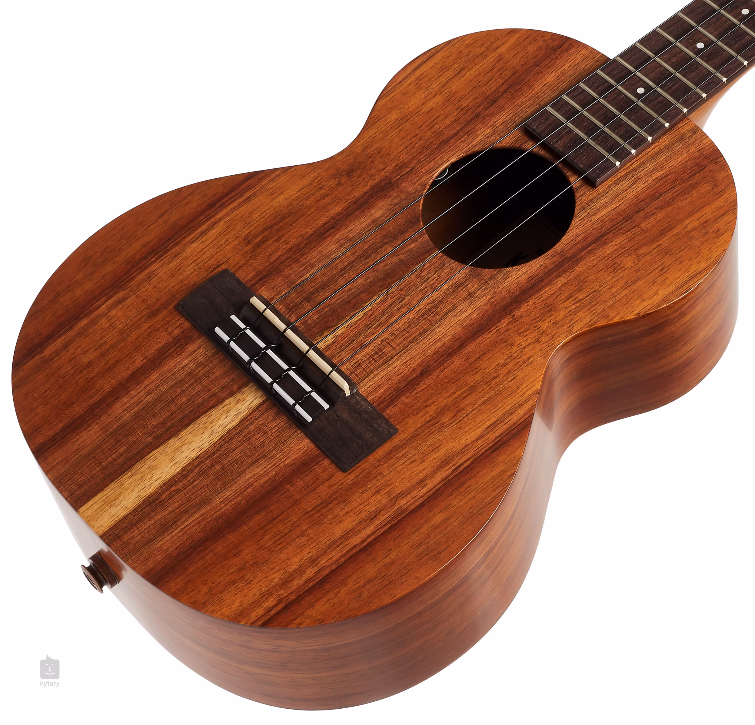 Electroacoustic Kamaka HF-3 I FIVE.O Tenor Slotted Head Ukulele Ukule je vyrobené z masívneho výberového dreva havajskej koa. Textúra dreva je zvýraznená pololesklou lakovou povrchovou úpravou. Mahagónový krk je prilepený k palisandrovému hmatníku osadenému osemnástimi pražcami. Firemné nylonové struny sú uchytené cez nultý pražec TusQ v mechanikách Schaller a palisandrovom hmatníku. Nádherné remeselné spracovanie podčiarkuje perleťová intarzia na hlavici nástroja z havajského dreva koa.