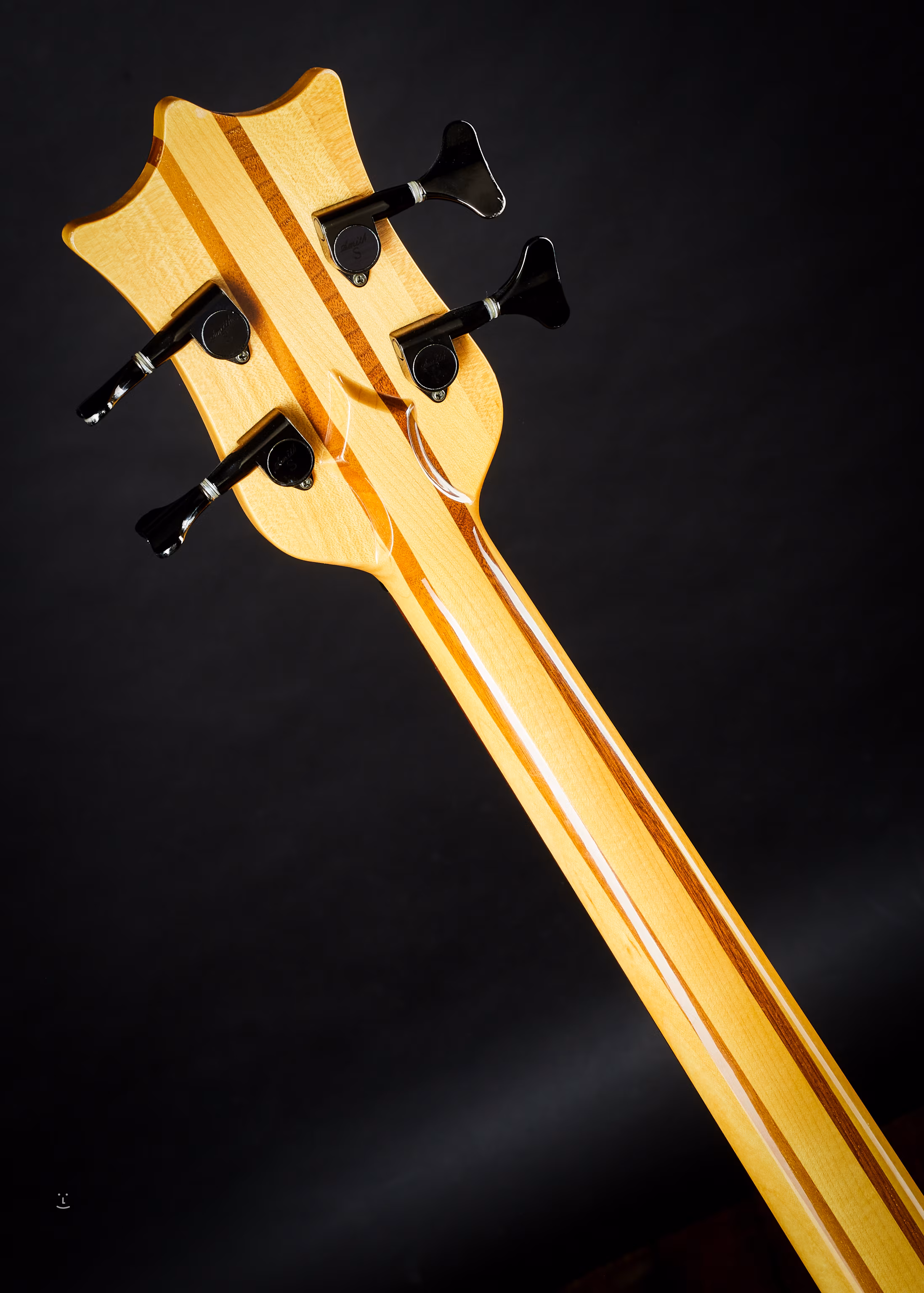 Skrutkovaný krk, telo s luxusným javorovým topom. Päťvrstvový krk, 24-pražcový hmatník.