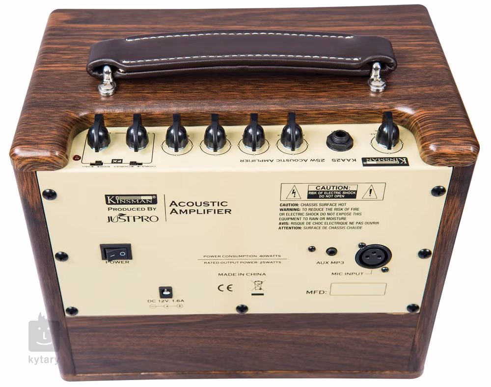 Kinsman KAA25 ponúka širokú škálu funkcií, vďaka ktorým si ľahko prispôsobíte zvuk. Každý zo vstupov je vybavený vlastným ovládaním hlasitosti. Ekvalizér umožňuje nastaviť pomer basových, stredových a výškových frekvencií a efekty Chorus (1, 2) a dva typy Reverb (Room, Hall) oživia váš zvuk a dodajú mu atmosféru. Vďaka pripojeniu Bluetooth a konektoru Aux In môžete cez kombo prehrávať aj externé zdroje zvuku a používať ho na jamovanie s obľúbenými interpretmi alebo jednoducho ako bežný reproduktor Bluetooth. Súčasťou balenia je napájací adaptér.