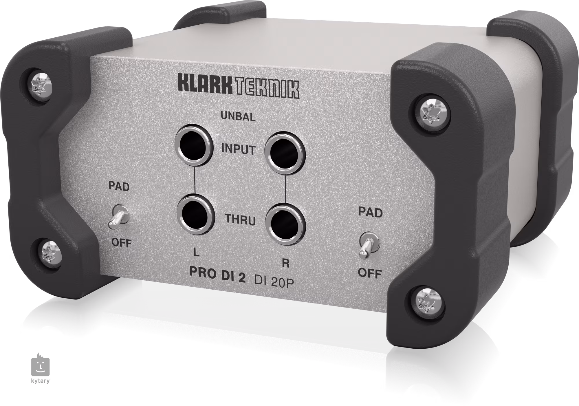KLARK TEKNIK DI 20P je pasívny stereo DI box s dvoma 6,3 mm jack vstupmi, dvoma 6,3 mm THRU jackmi a dvoma XLR výstupmi, prepínateľným vstupným útlmom pre úrovne signálu nástroja/zariadenia, Midas transformátormi pre maximálnu integritu signálu, prepínateľným uzemnením a hliníkovým šasi. DI box vám tak ponúka niekoľko možností smerovania signálu - signál je možné posielať cez XLR výstup a THRU konektor súčasne do mixážneho pultu a zosilňovača, alebo je možné monofónne zapojenie v dvoch monofónnych výstupoch.