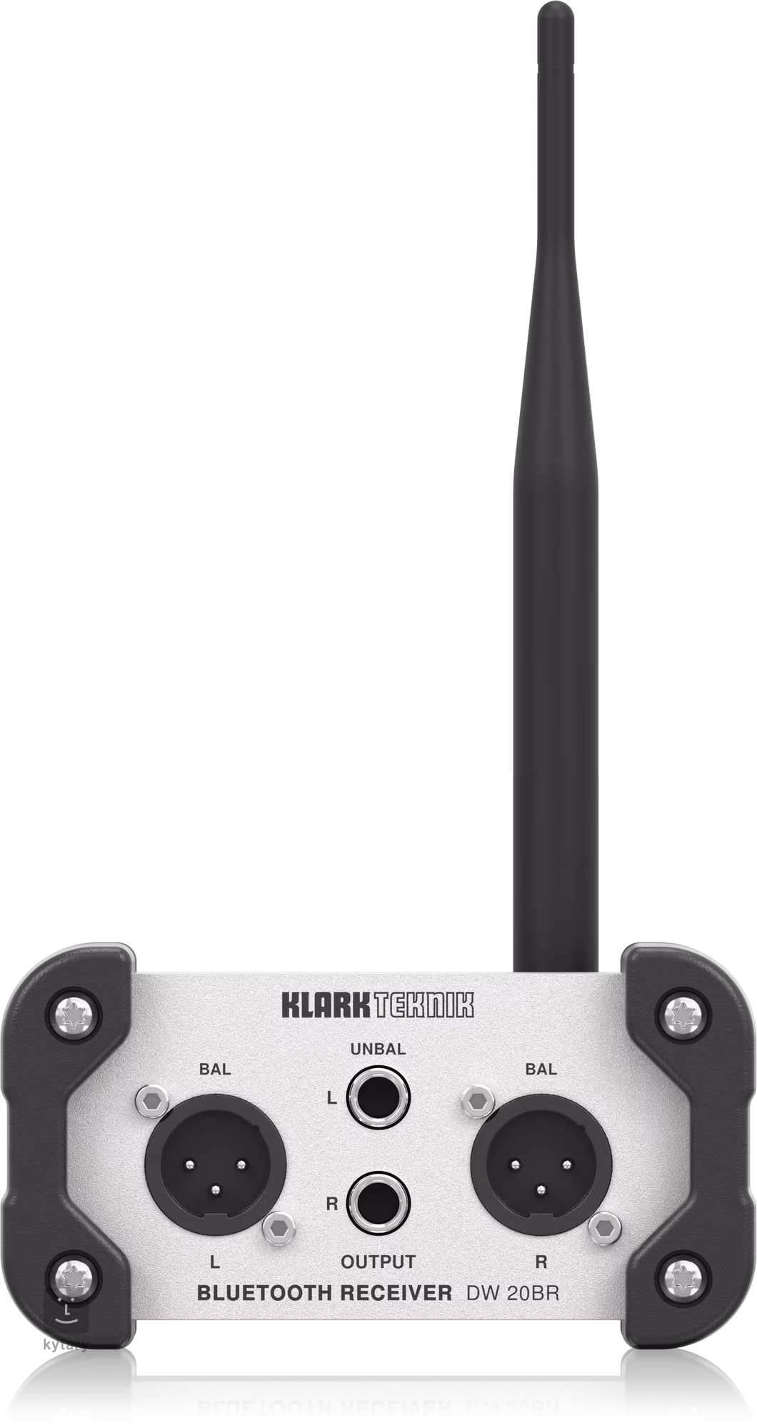 Klark Teknik DW 20BR je bezdrôtový stereoprijímač Bluetooth, ktorý poskytuje kvalitný zvukový tok do akéhokoľvek prenosného zvukového systému. Ponúka dosah až 30 metrov a dva symetrické XLR a dva nesymetrické 6,3 mm jack TRS výstupy na pripojenie k širokému spektru zvukových zariadení. Na napájanie DW 20BR použite priložený adaptér.