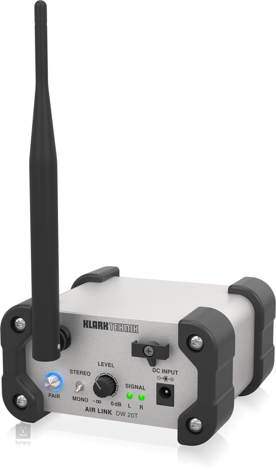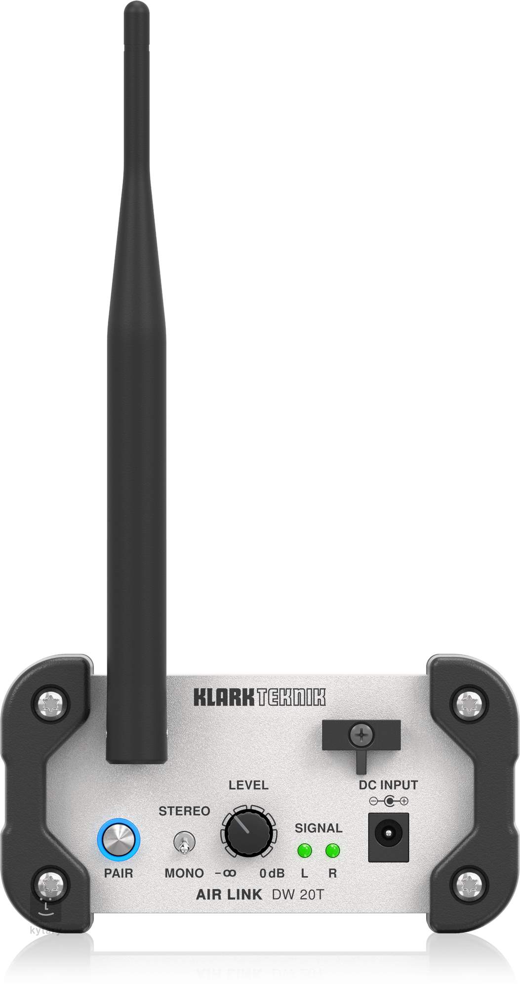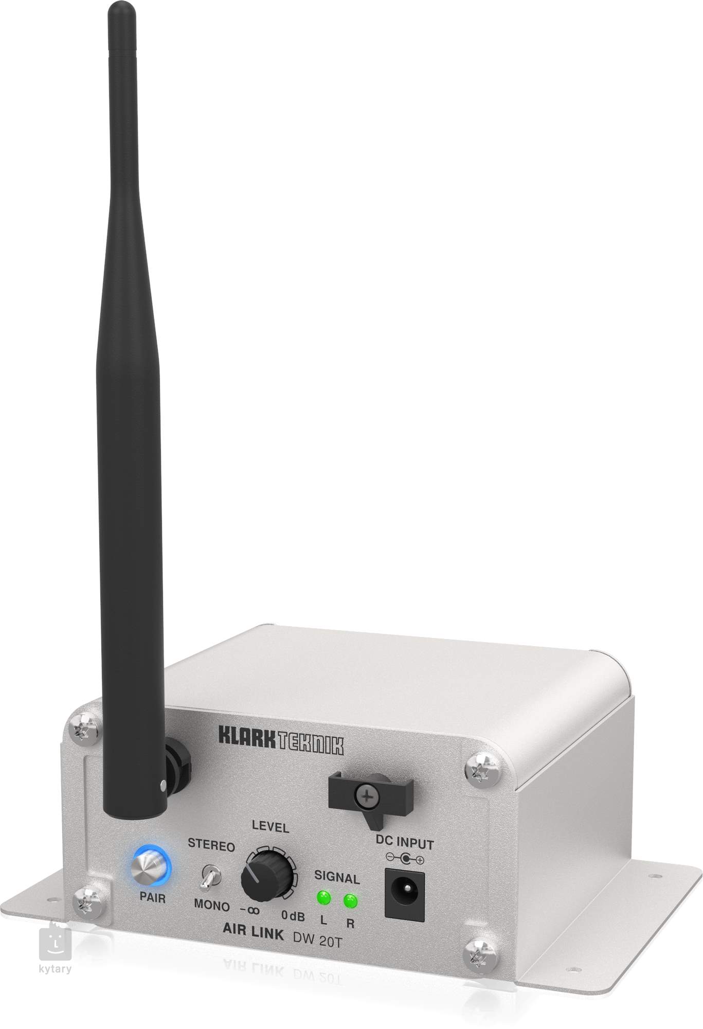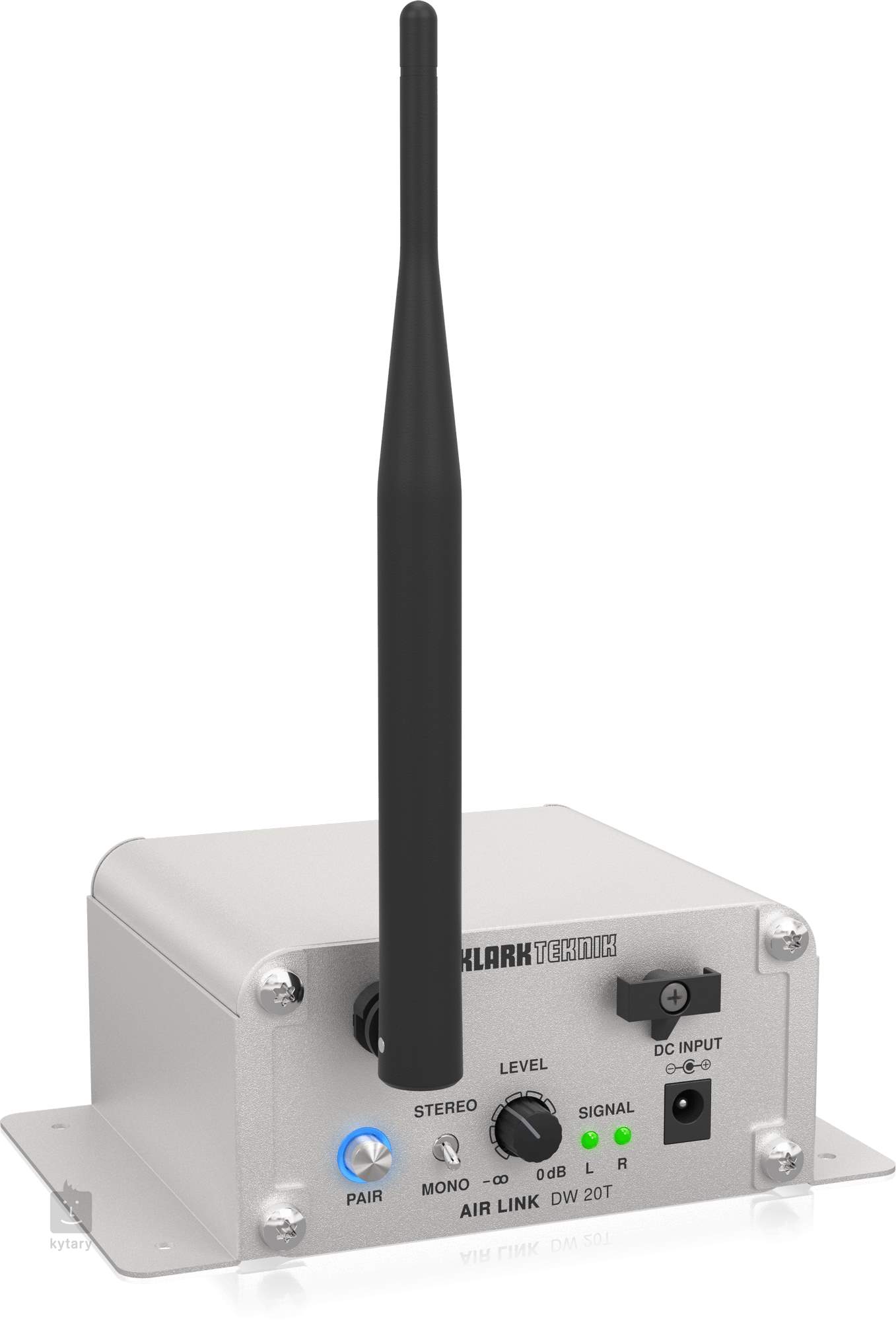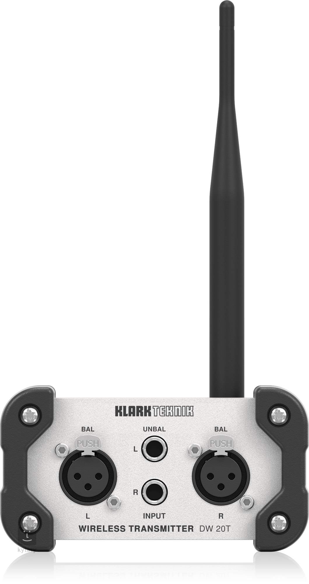 Klark Teknik DW 20T je bezdrôtový stereo vysielač, ktorý v kombinácii s bezdrôtovým prijímačom DW 20R poskytuje vysokokvalitný zvukový tok do akéhokoľvek prenosného audio systému. Ponúka externú anténu a dosah až 30 metrov a dva vyvážené XLR a dva nevyvážené 6,3 mm jack TRS vstupy na prepojenie s mixážnymi pultmi, zosilňovačmi a aktívnymi reproduktormi. Na napájanie DW 20T použite priložený adaptér.