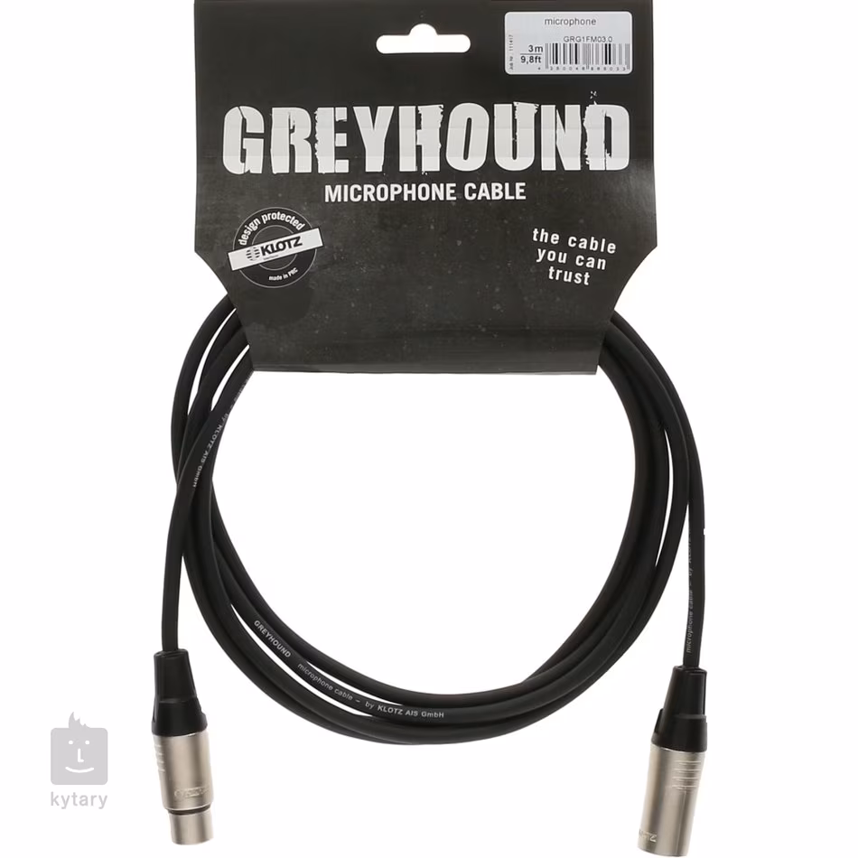 Mikrofónový kábel Greyhound série GRG1FM má vysokokvalitné medené jadro s robustným PVC povrchom a je zakončený odolnými poniklovanými konektormi XLR.