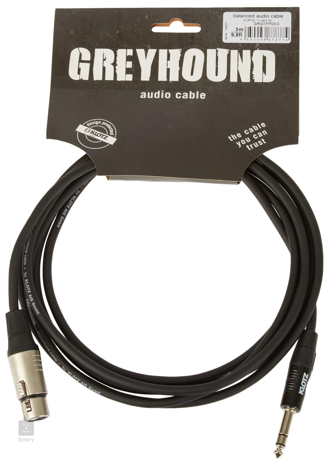 Mikrofónny kábel Greyhound série GRG1FP má vysokokvalitné medené jadro s robustným PVC povrchom a je zakončený odolnými poniklovanými konektormi XLR a 6,3 mm Jack.