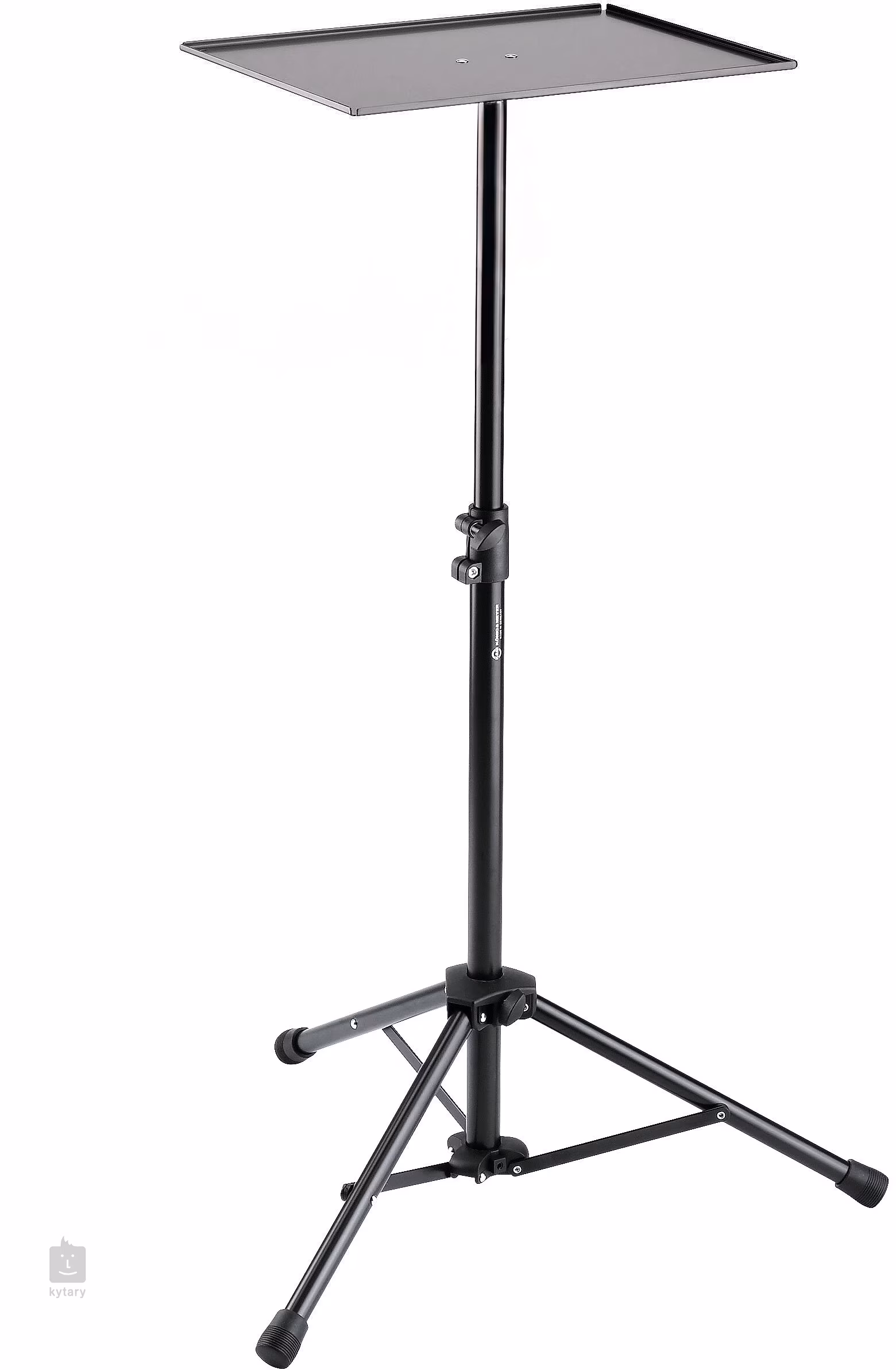 Stojanna notebookK&M 12151 je stabilný a praktický stojan na notebook, ktorý je ideálny na použitie na pódiu, v štúdiu, počas DJ vystúpení alebo prezentácií. Vďaka robustnej oceľovej konštrukcii a stabilnému statívu s výstuhami ponúka vysokú pevnosť a spoľahlivosť aj pri intenzívnom používaní. Rozsah nastavenia výšky od 763 do 1245 mm umožňuje jednoduché prispôsobenie rôznym pracovným situáciám, zatiaľ čo pracovná plocha s rozmermi 400 × 290 mm poskytuje dostatok priestoru pre väčšinu notebookov. Maximálna nosnosť stojana je 10 kg.