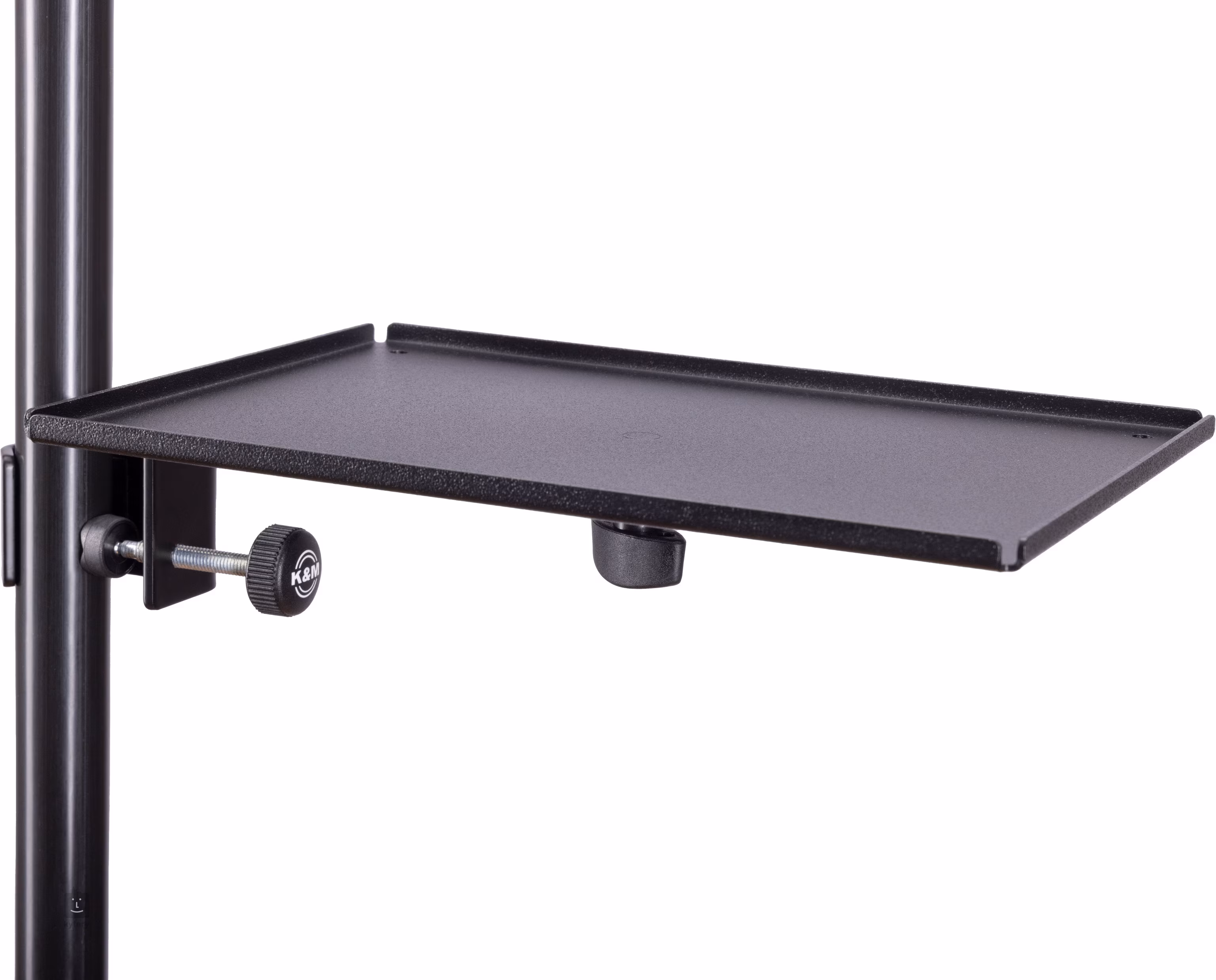 Polica s rozmermi 230 × 170 mm je vyrobená z odolnej ocele a má textúrovanú čiernu povrchovú úpravu, ktorá zvyšuje jej odolnosť a zaisťuje profesionálny vzhľad. Vďaka praktickému montážnemu systému sa dá ľahko pripevniť na stojany alebo tyče s priemerom až 30 mm. Ďalšou veľkou výhodou je otočnosť o 360°, ktorá umožňuje flexibilné prispôsobenie potrebám vášho pracovného priestoru. Hmotnosť 0,639 kg zaisťuje stabilitu a jednoduchú manipuláciu pri inštalácii.