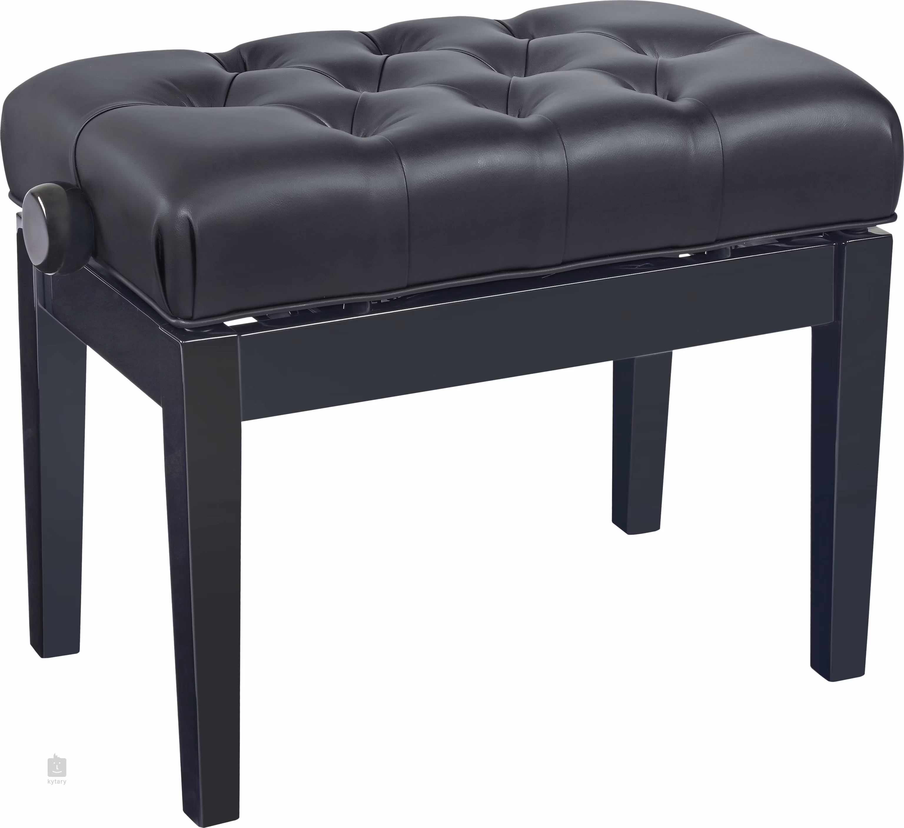 König & Meyer 13863 je mimoriadne pohodlná klavírna stolička s flexibilným nastavením výšky, ktorá spĺňa požiadavky profesionálnych hudobníkov aj študentov hudobných škôl. Elegantná lesklá čierna povrchová úprava je doplnená prešívaným čiernym koženkovým sedadlom s ozdobnými cvočkami, ktoré stoličke dodávajú luxusný a prestížny vzhľad.